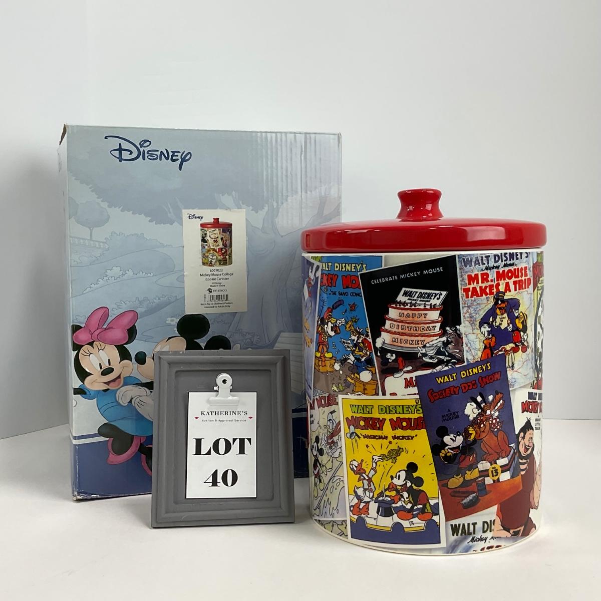 One Enesco Disney Mickey Mouse collage cookie jar with box the box has some damage but the piece itself appears to be in great shape. Please see photos for details and condition. Any condition statement is given as a courtesy to a client, is an opinion, and should not be treated as a statement of fact. Reference to condition written, oral or within a condition report shall not be regarded as a full account of condition and may not include all defects, alterations, or restorations. Absence of a condition report does not imply a lot is flawless or lacking imperfections or damage. Katherine’s Auction & Appraisal Service shall have no responsibility for any error or omission. Returns shall not be accepted on the basis of condition. ::: Shipping is available on this lot. If you require shipping you must let us know at the close of the auction. We will coordinate with you after the item has been won. Shipping fees will include insurance up to or exceeding the value of all items being mailed. If you have any questions regarding this lot please contact the auctioneer either via this website, by direct email or by phone. PICK UP TIMES and other important information can be found in the TERMS and DESCRIPTION of the auction. Please take a look for pertinent information. Thanks!