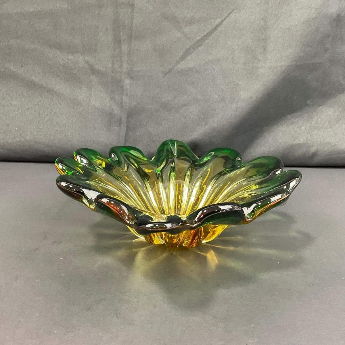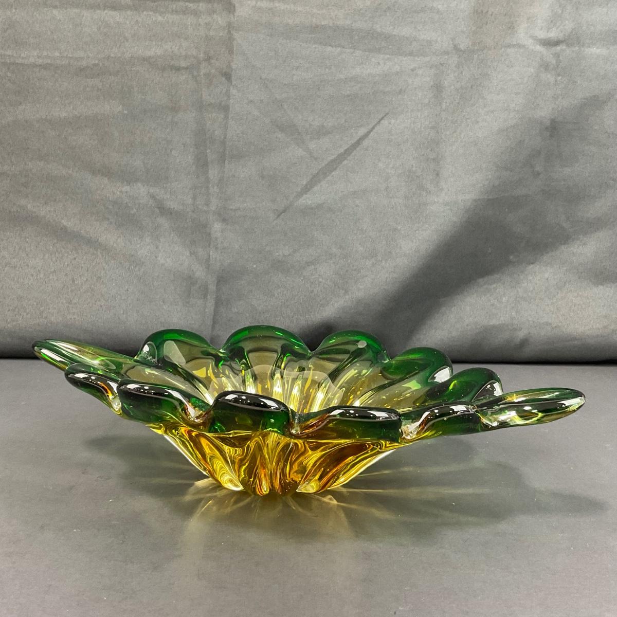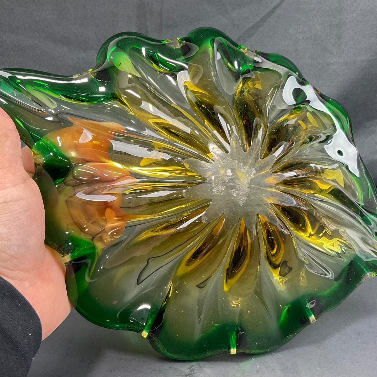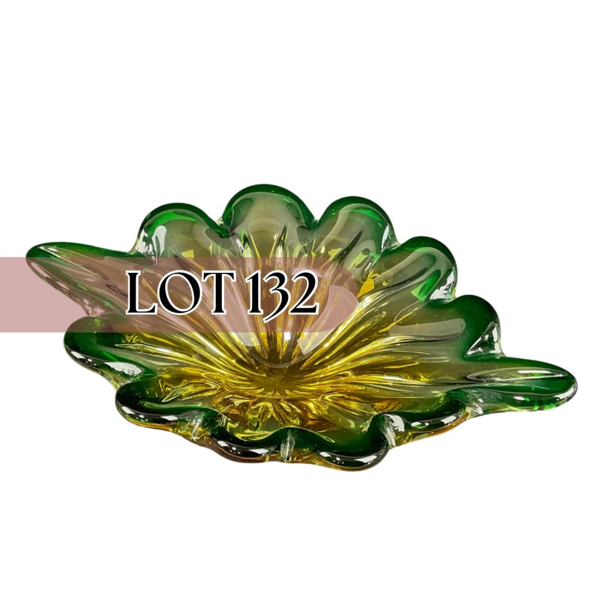 -132- GLASSWARE | Murano Green & Gold Glass Dish