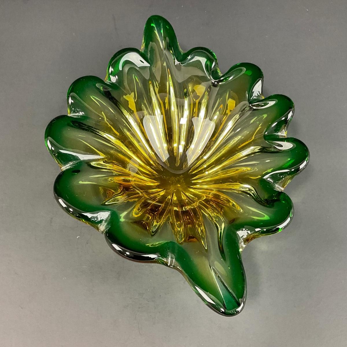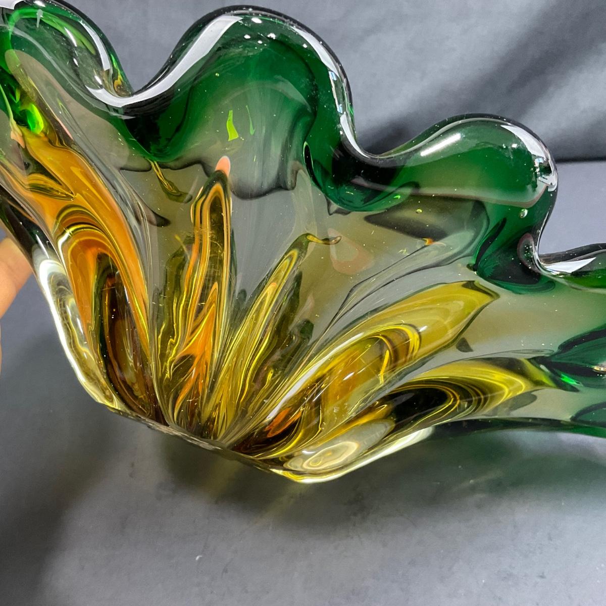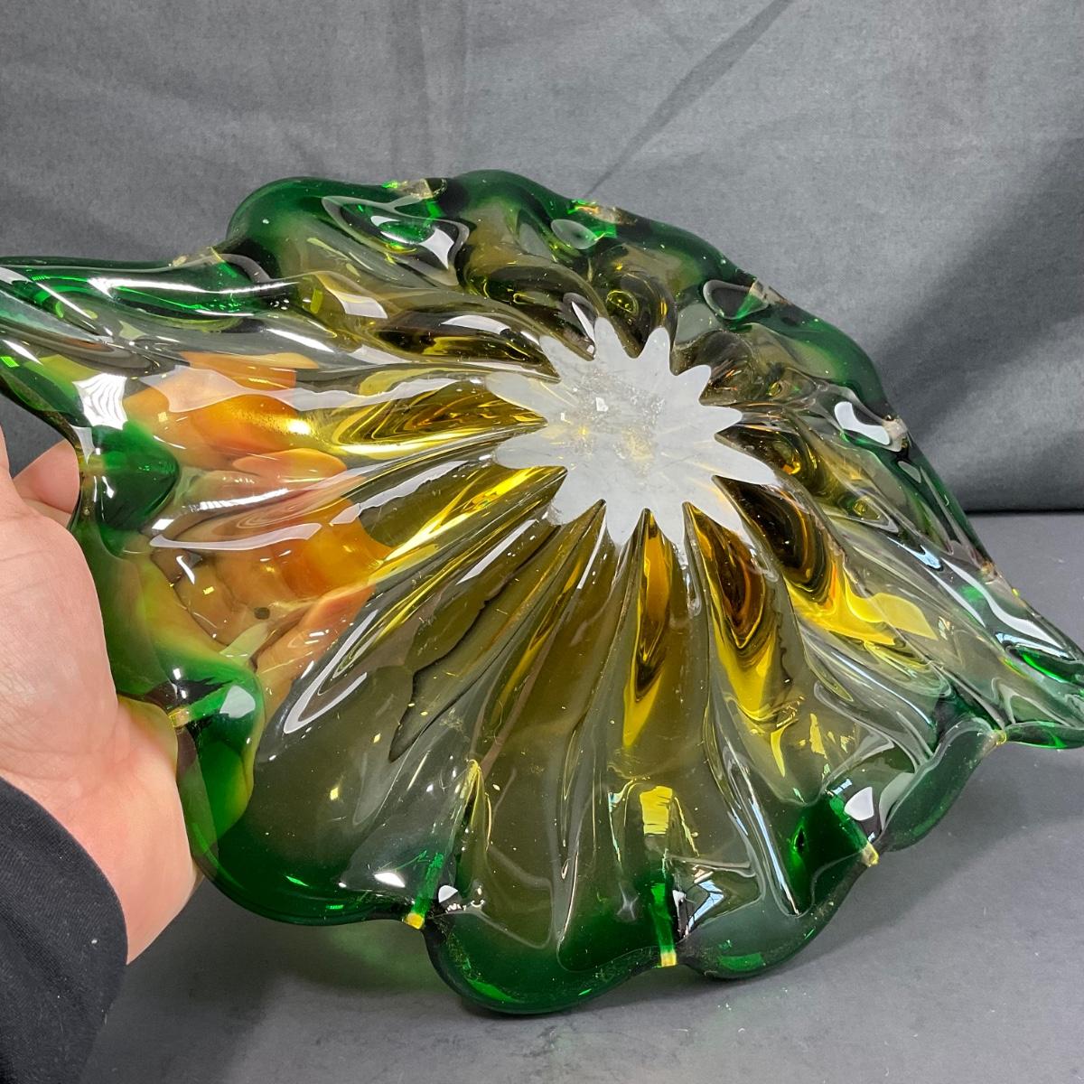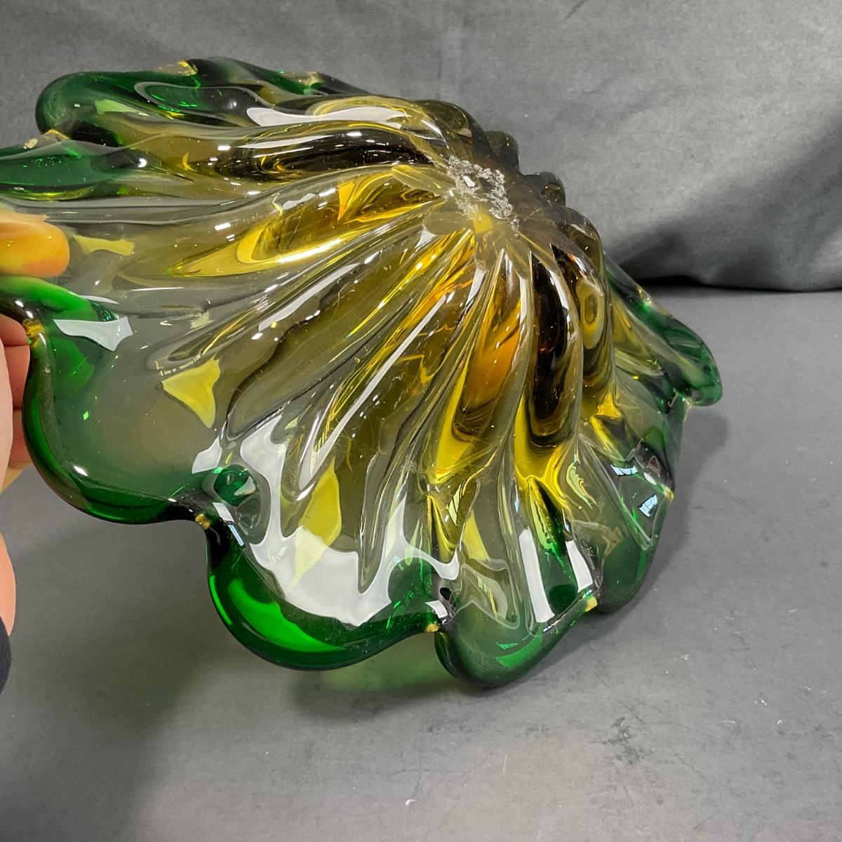 -132- GLASSWARE | Murano Green & Gold Glass Dish