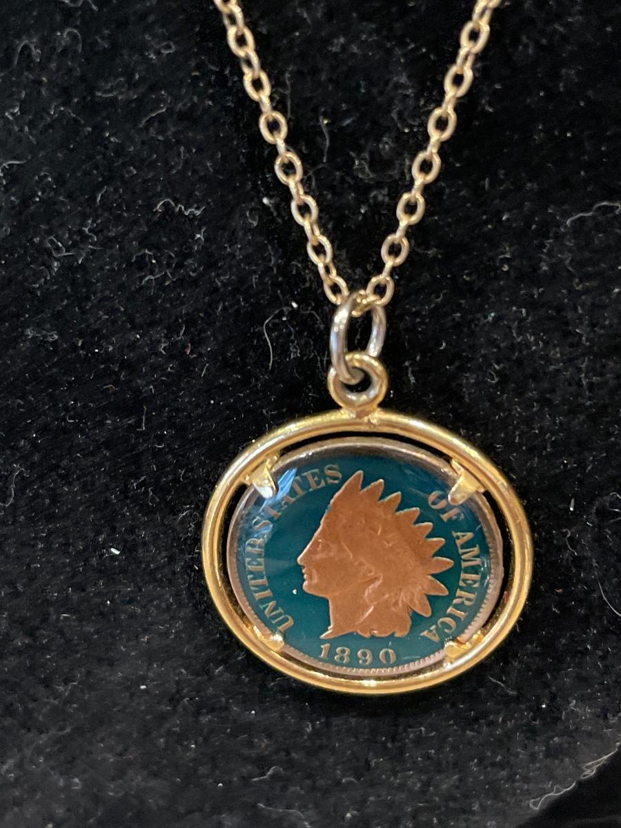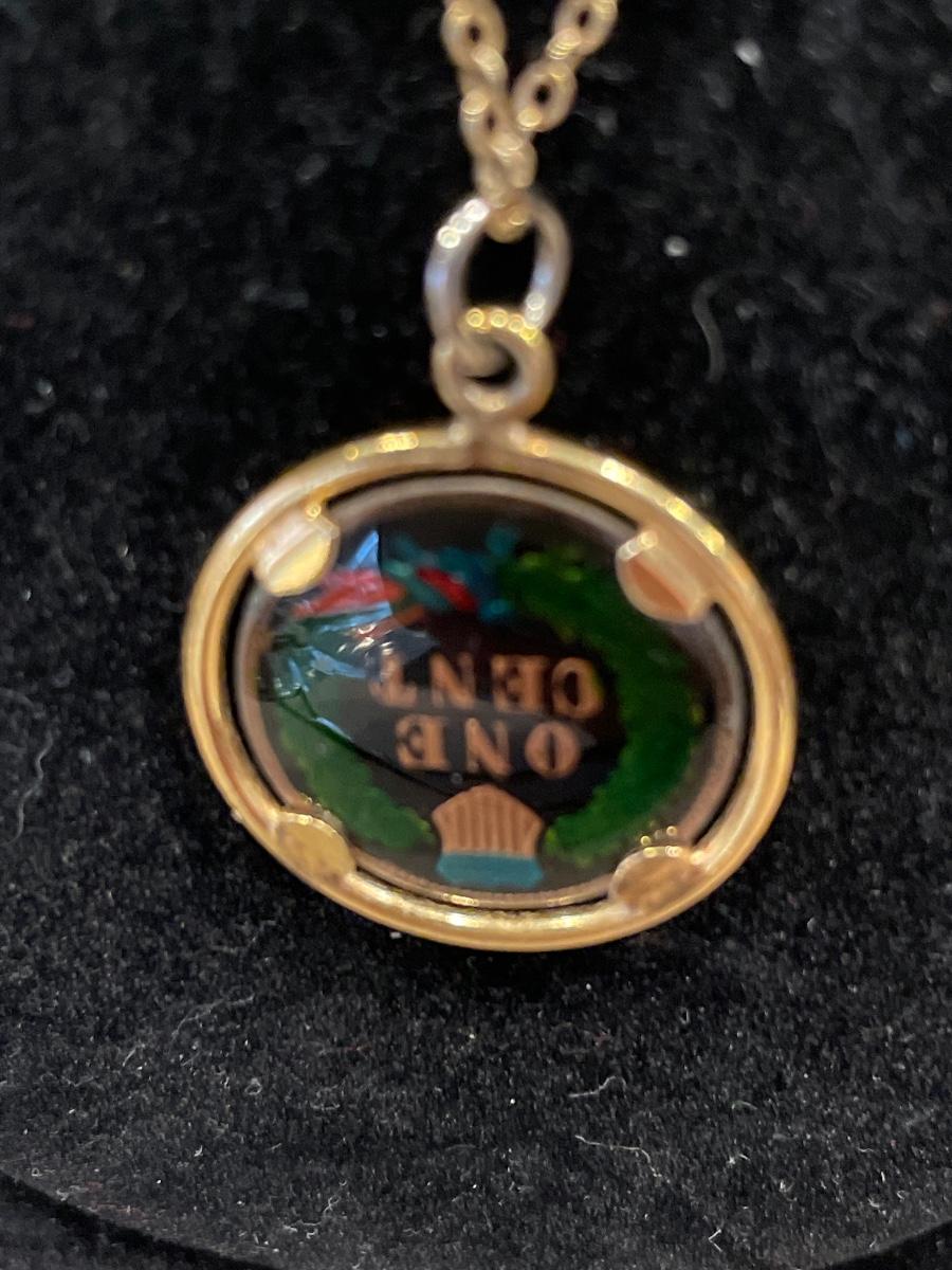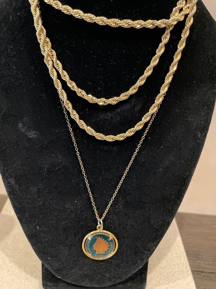 40” gold tone chain and One Cent necklace