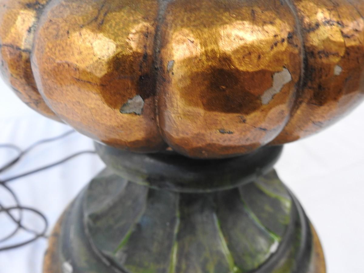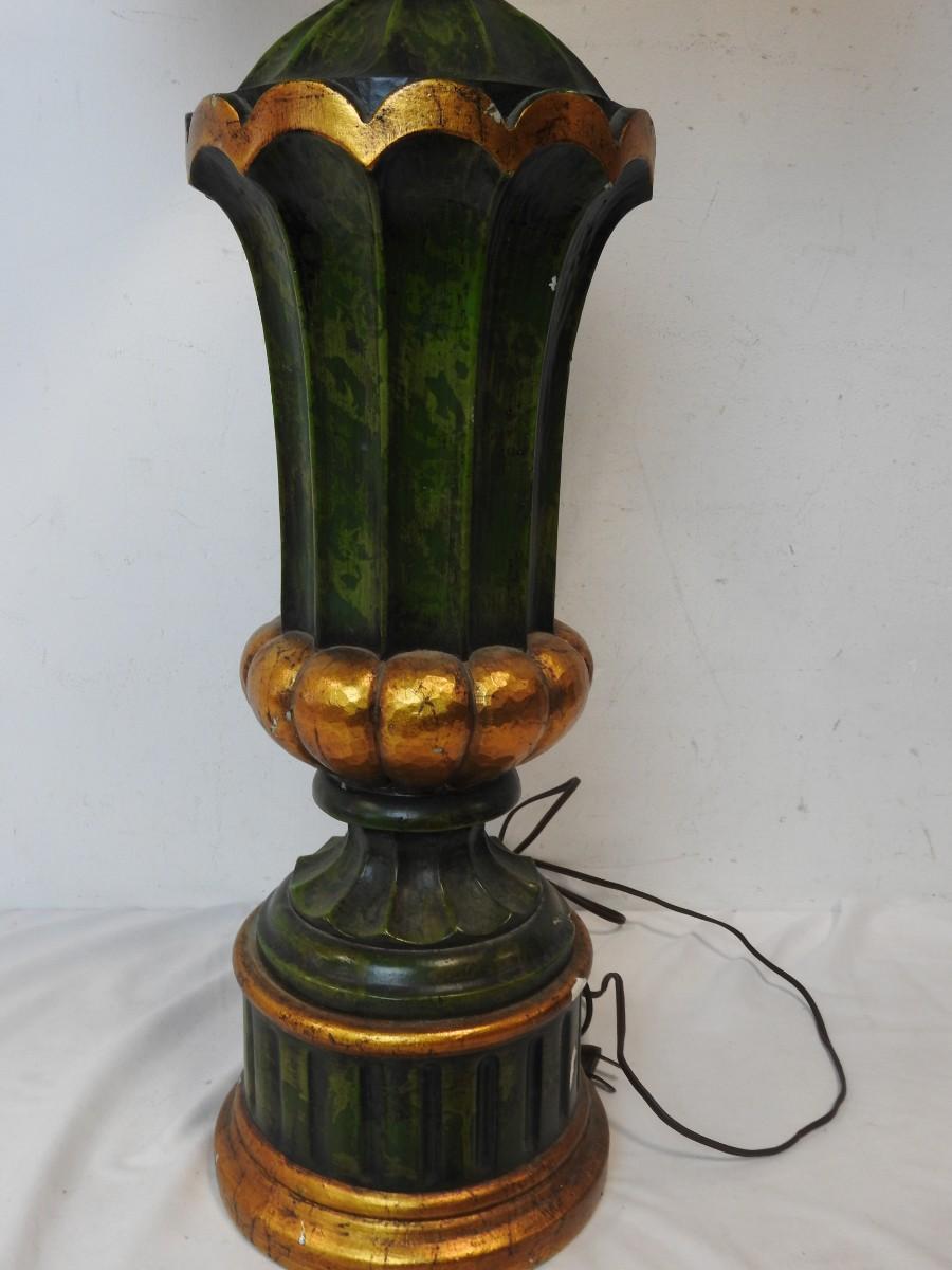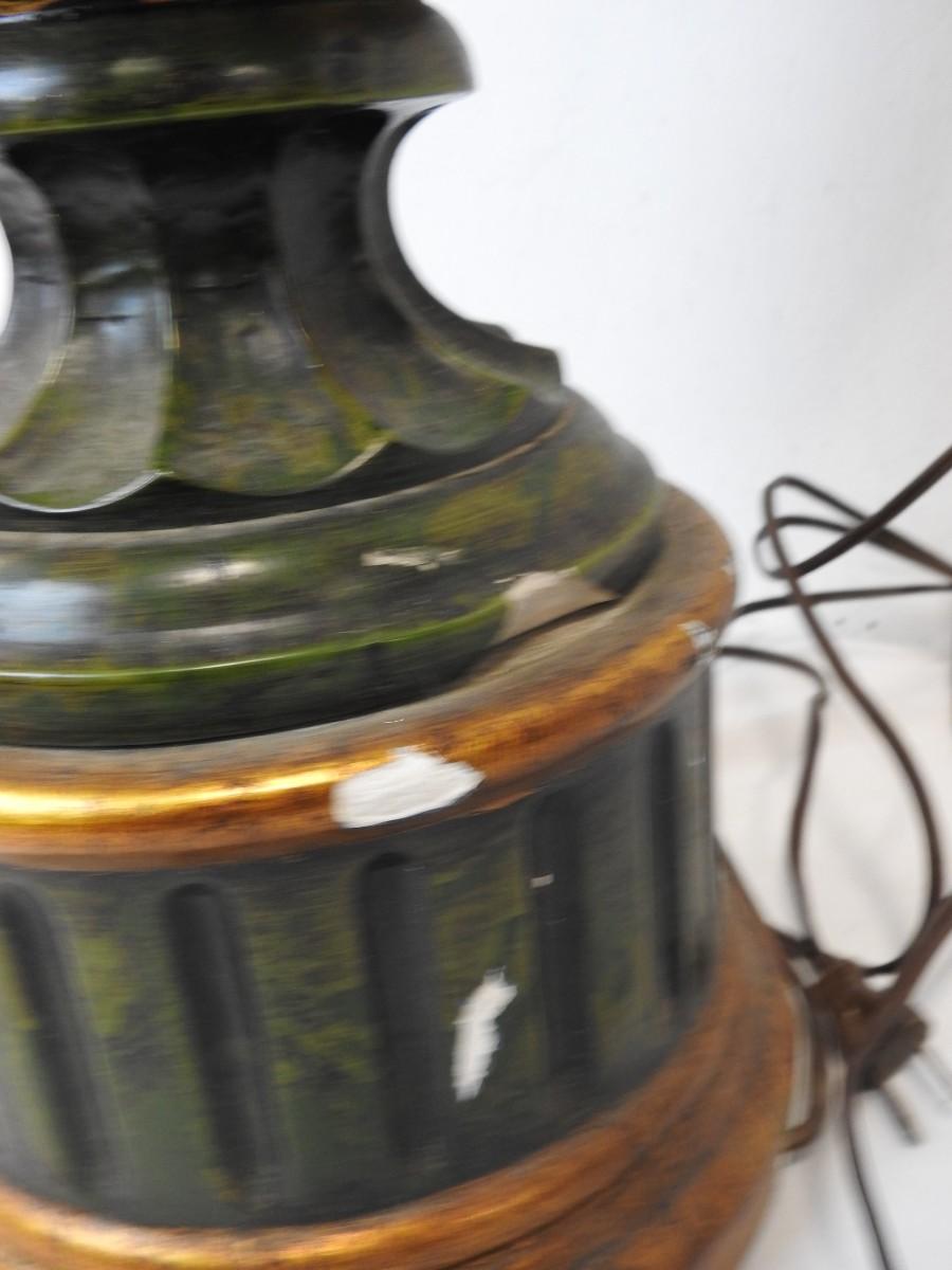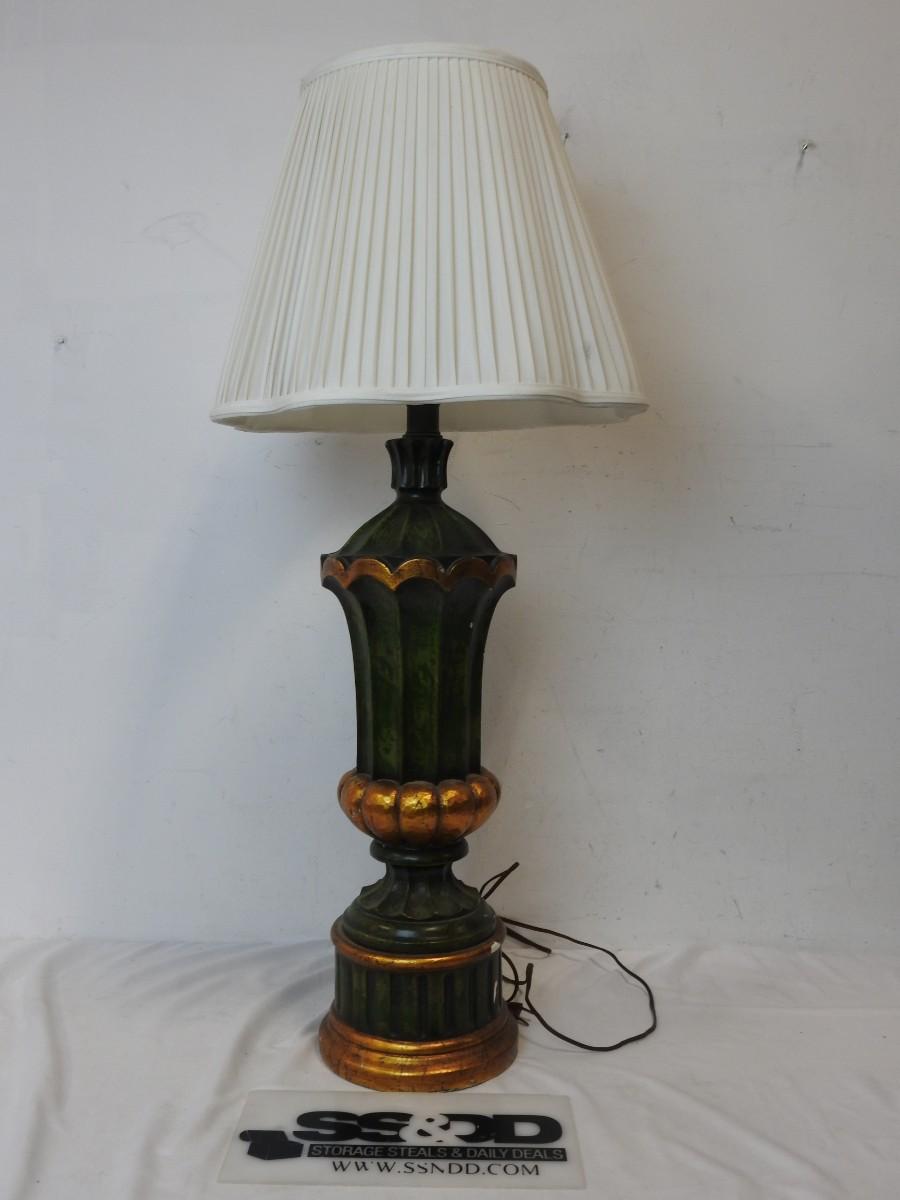 40" Green/Gold Painted Lamp w/Shade, Small Knicks in Paint