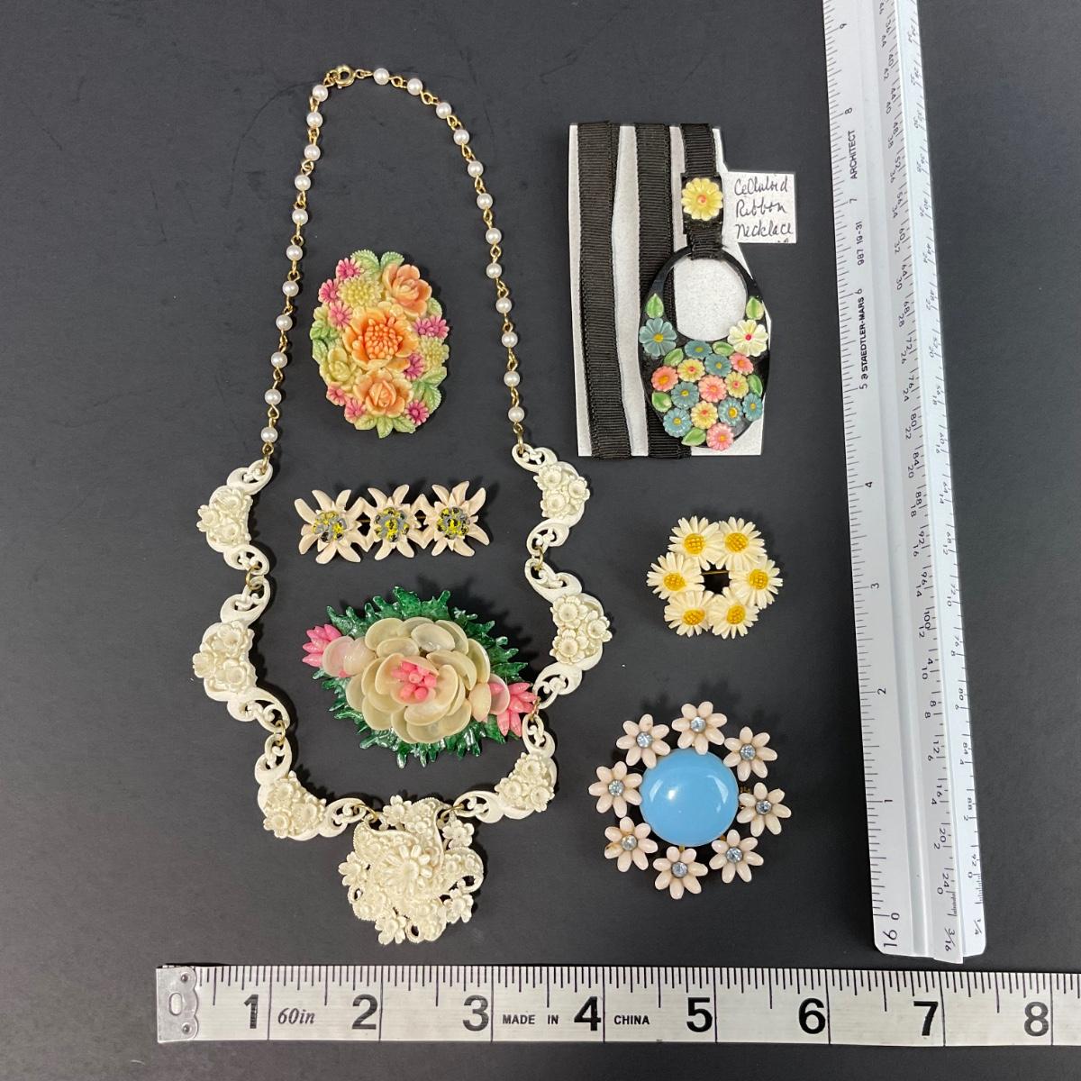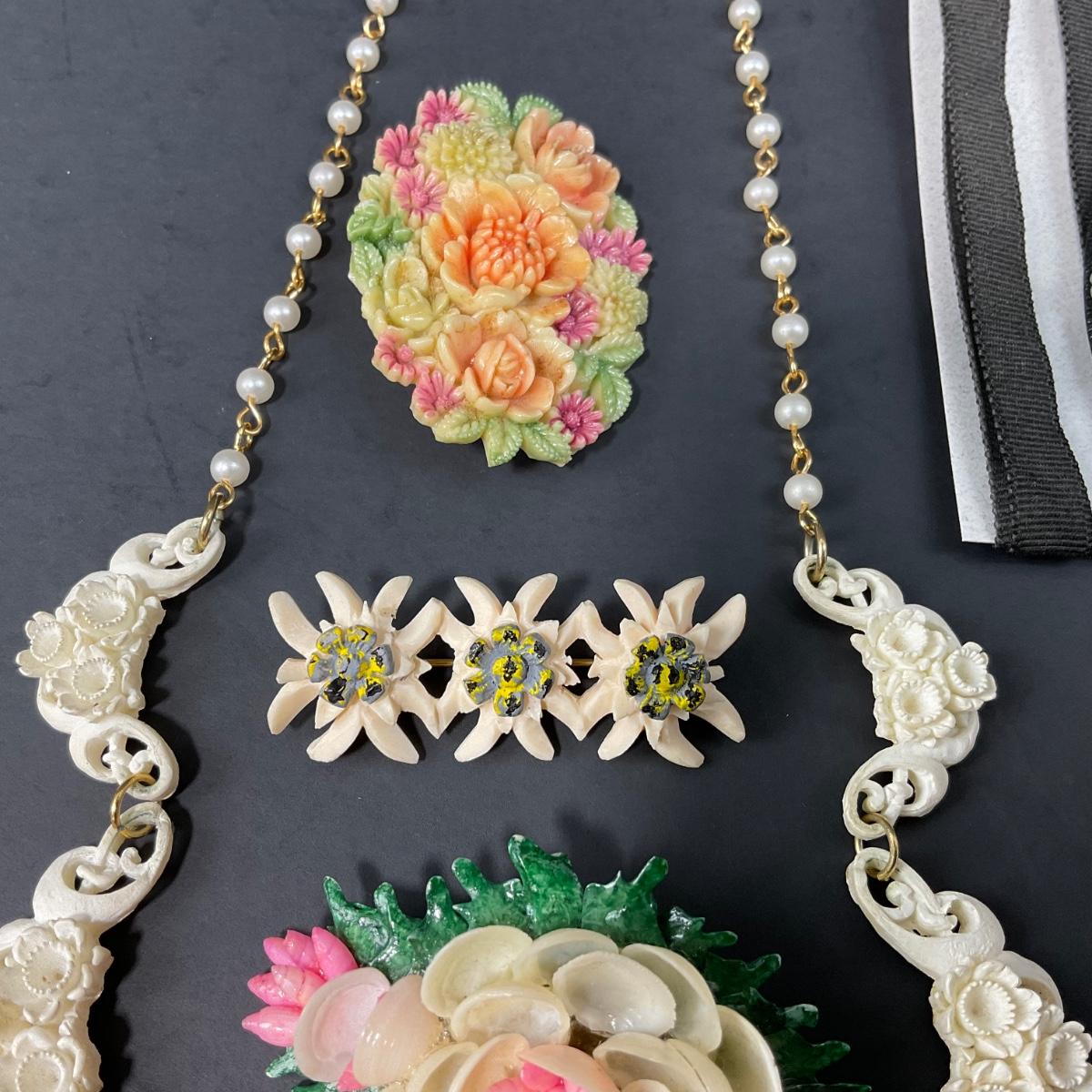 -40- JEWELRY | Celluloid Pieces & Shell Brooch