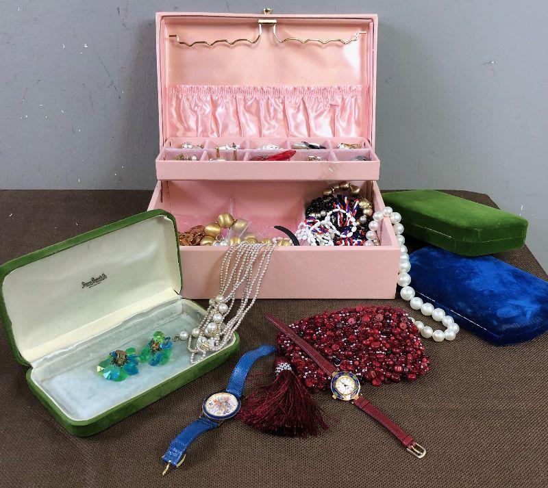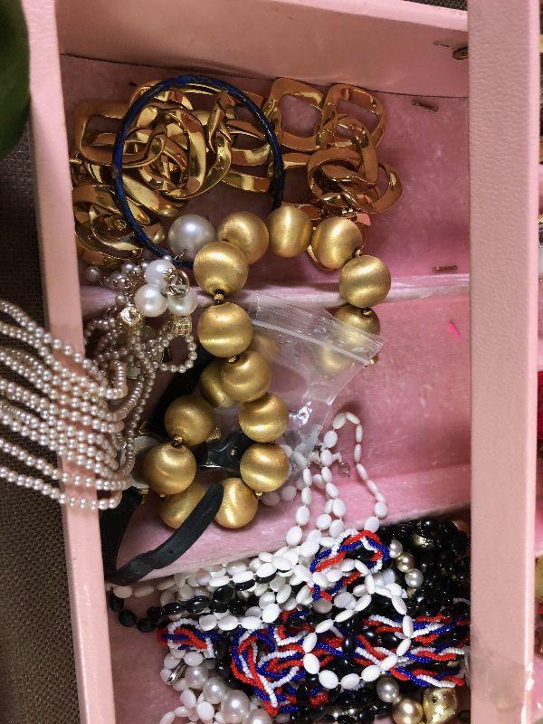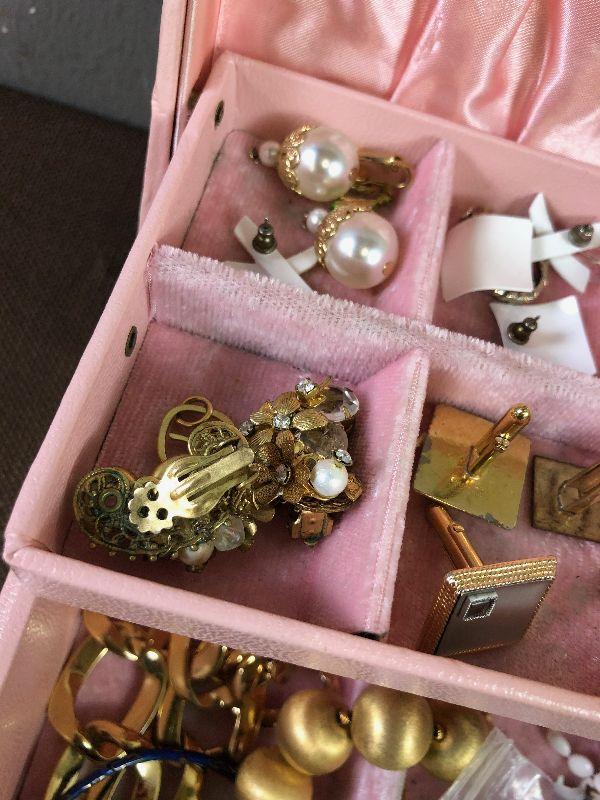 #40 Jewelry Lot and Pink Jewelry Box by Lady Buxton