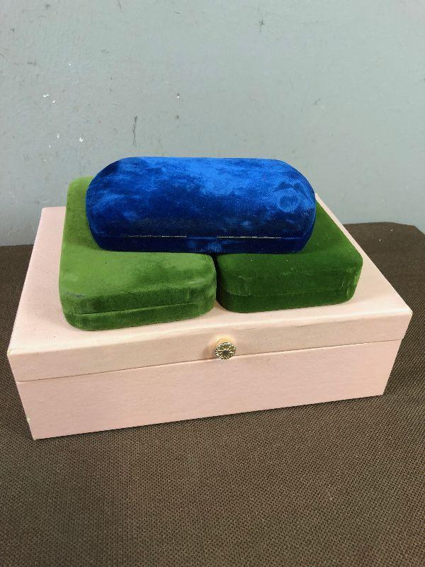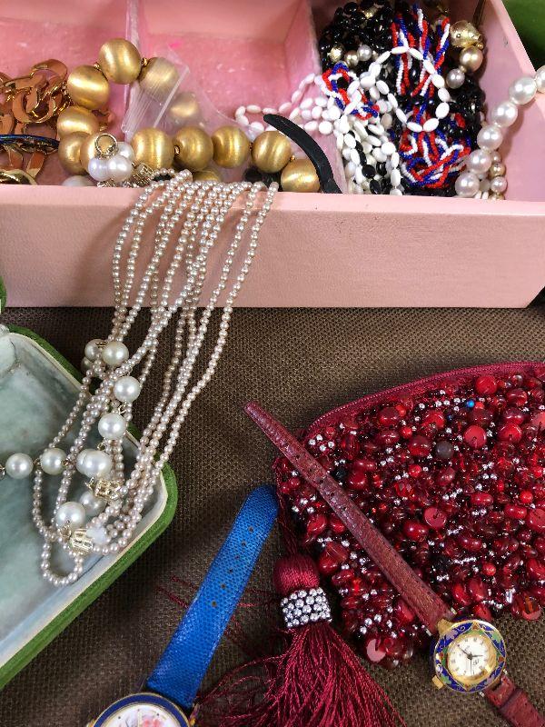 Watches, necklaces, pearls, cuff links velvet boxes etc.