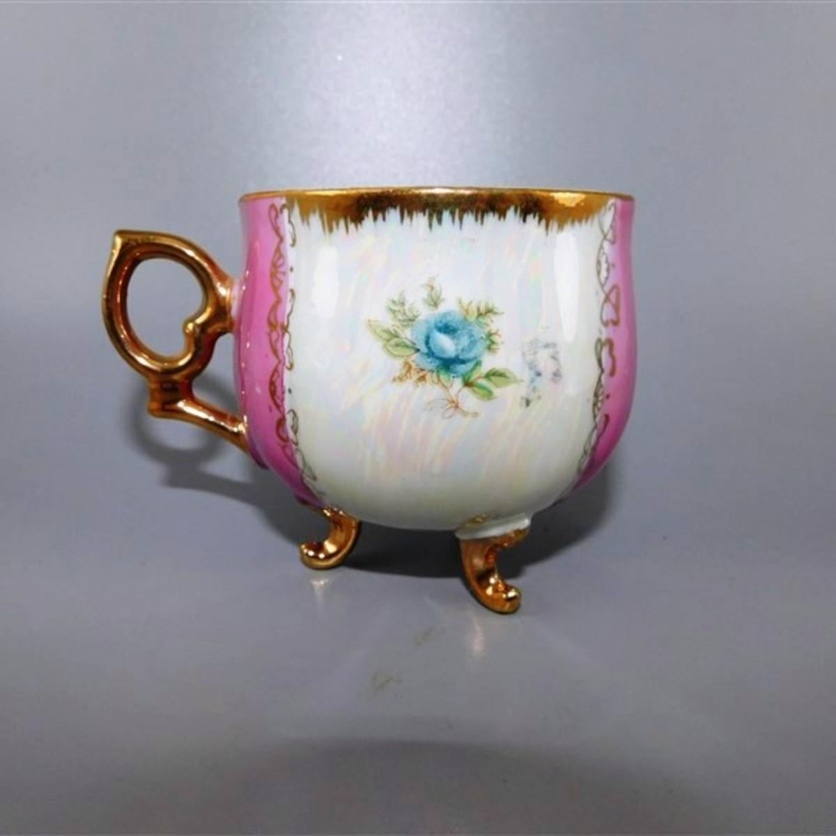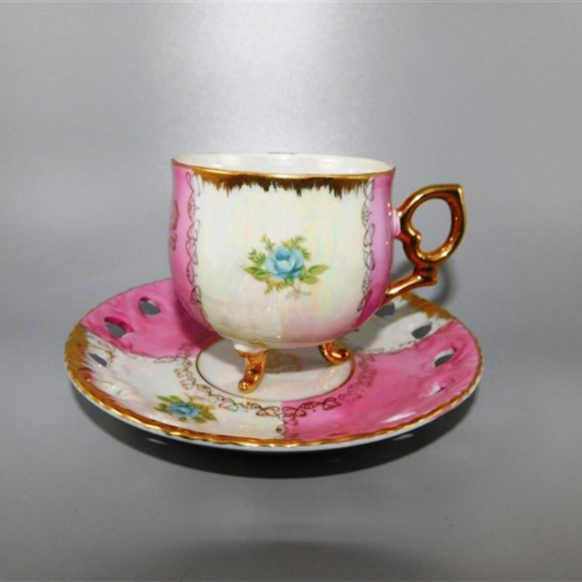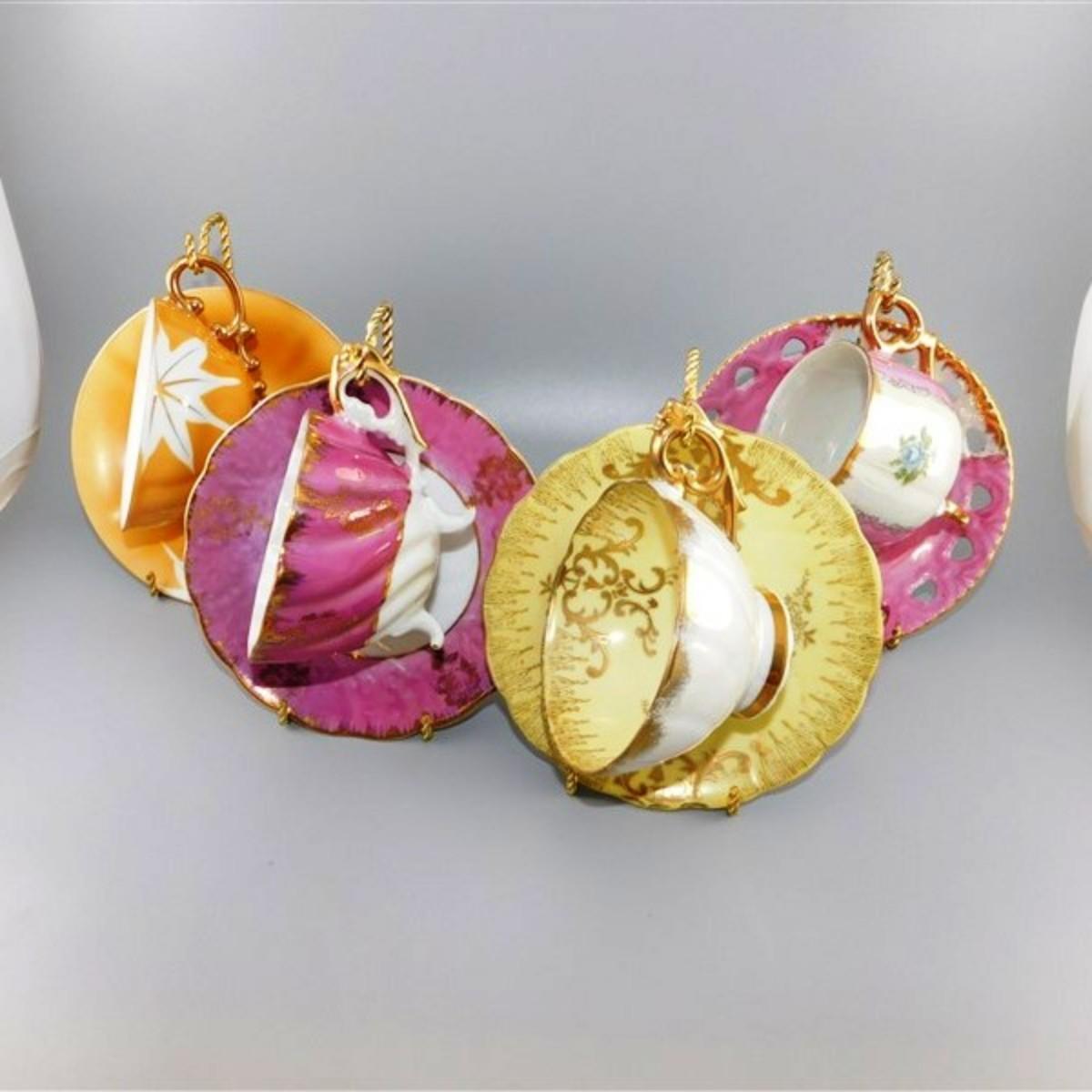 40 Lot of 4 Cups and Saucers with Stands - Royal Sealy /United Glass Company 6 x 3 1/2 approx.