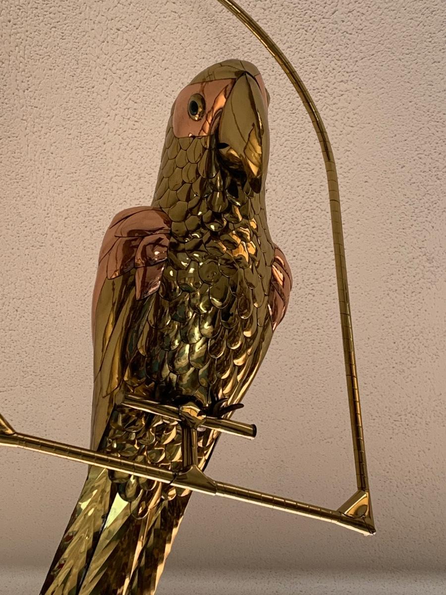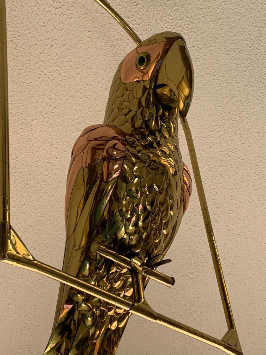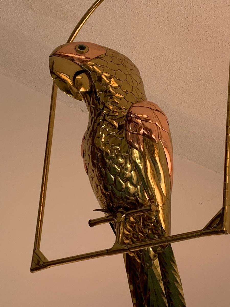 Huge 40” SERGIO BUSTAMANTE Brass & Copper Artisan Parrot On Swing