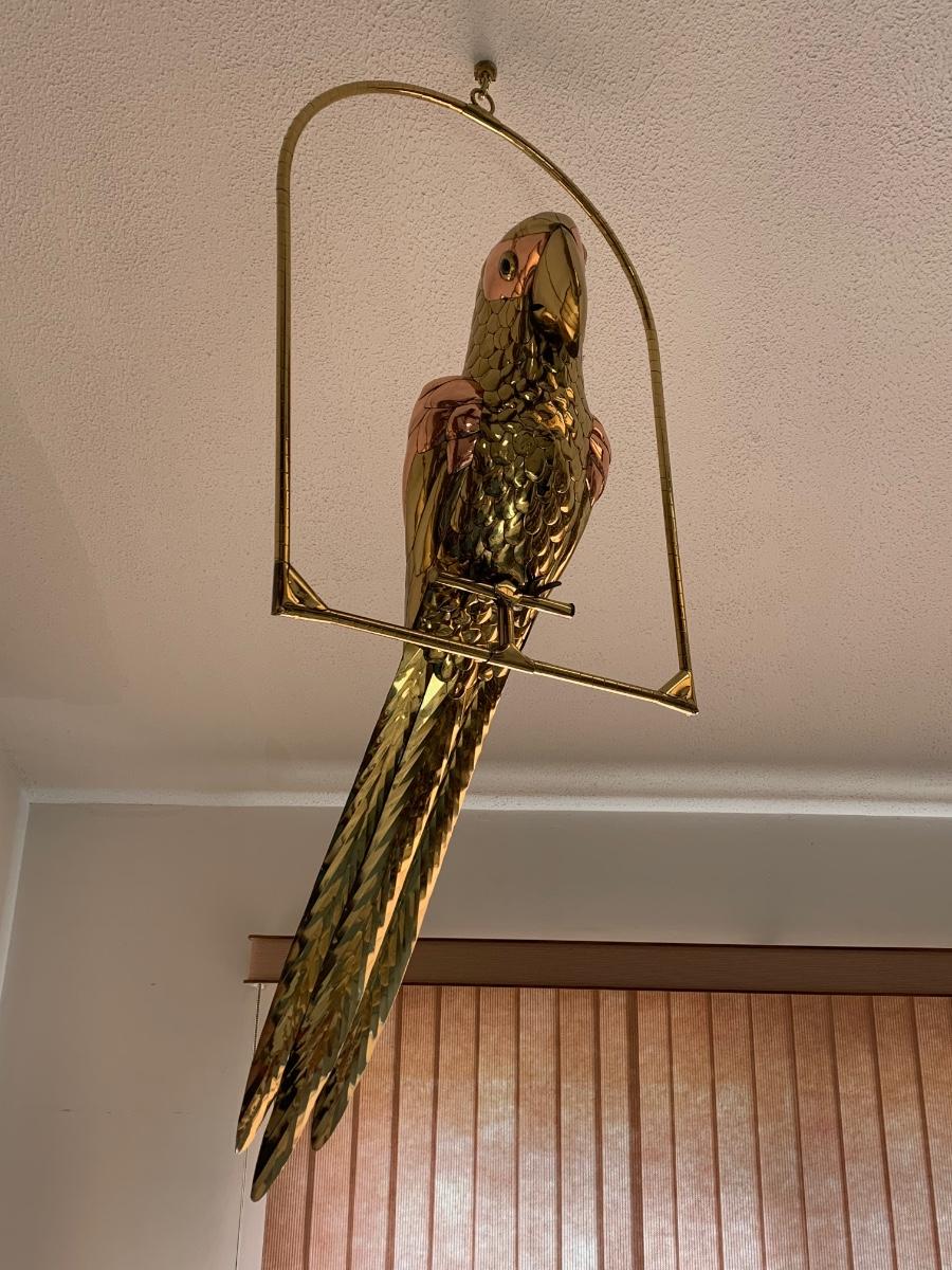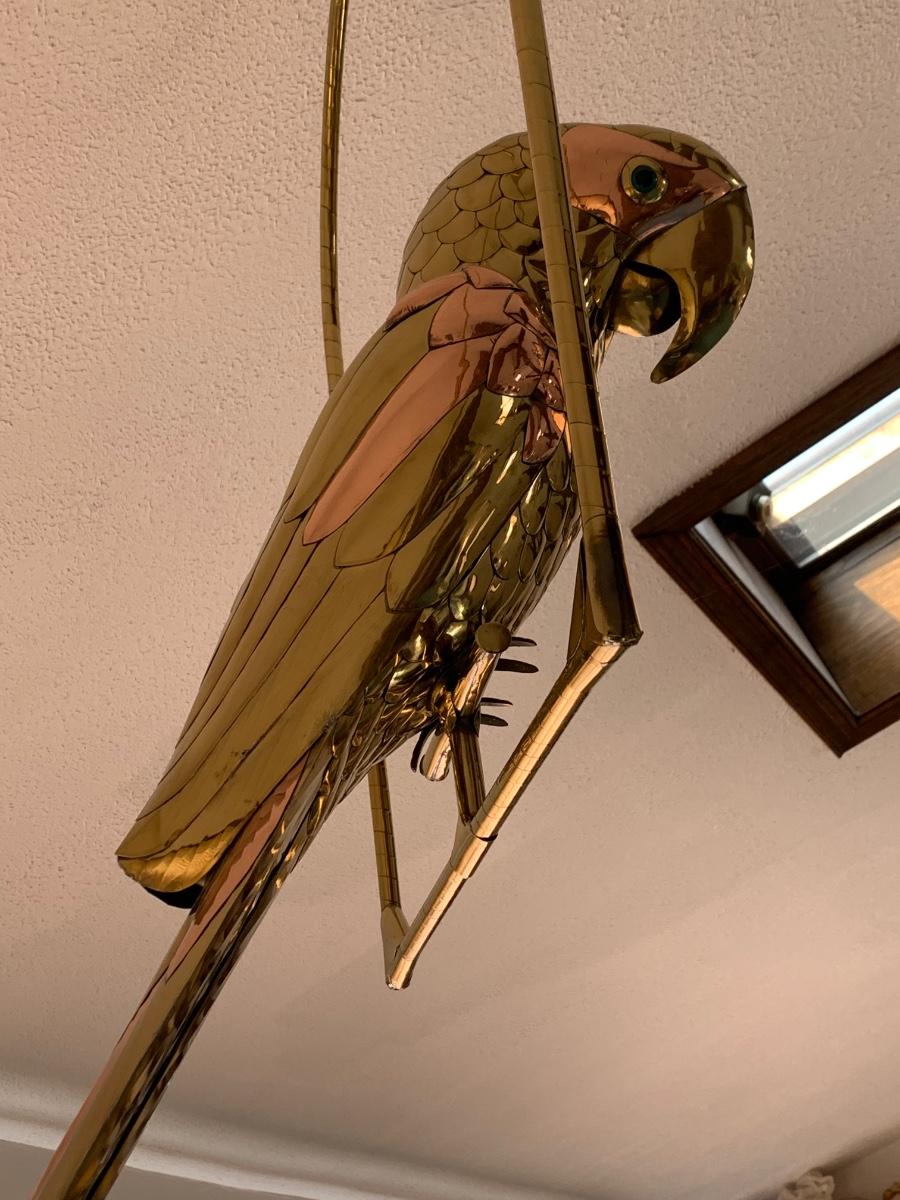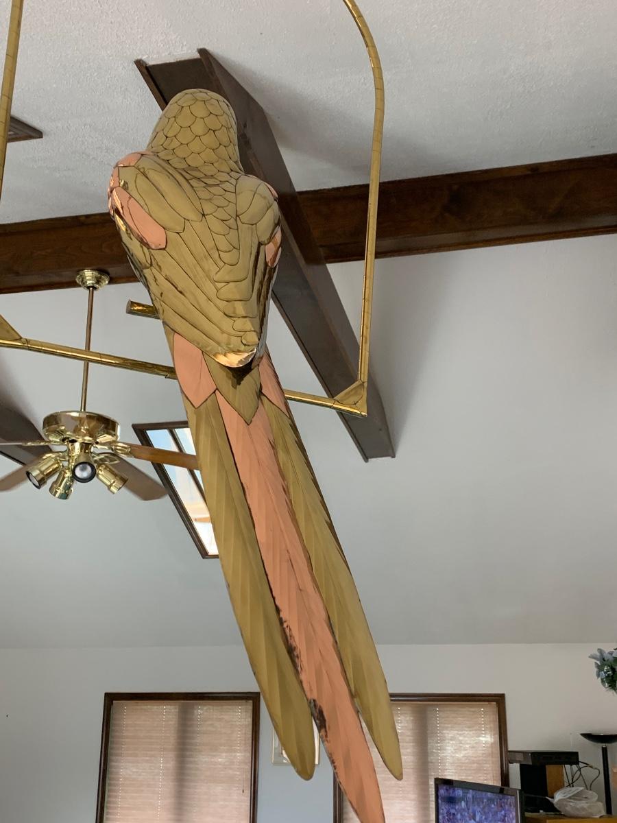 Huge 40” SERGIO BUSTAMANTE Brass & Copper Artisan Parrot On Swing
