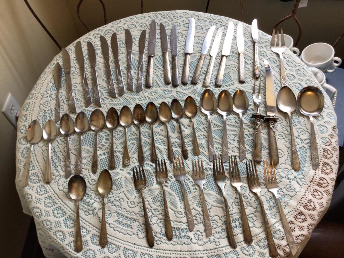 You get more than 40 pieces of silver plated silverware. Variety of makers and patterns.