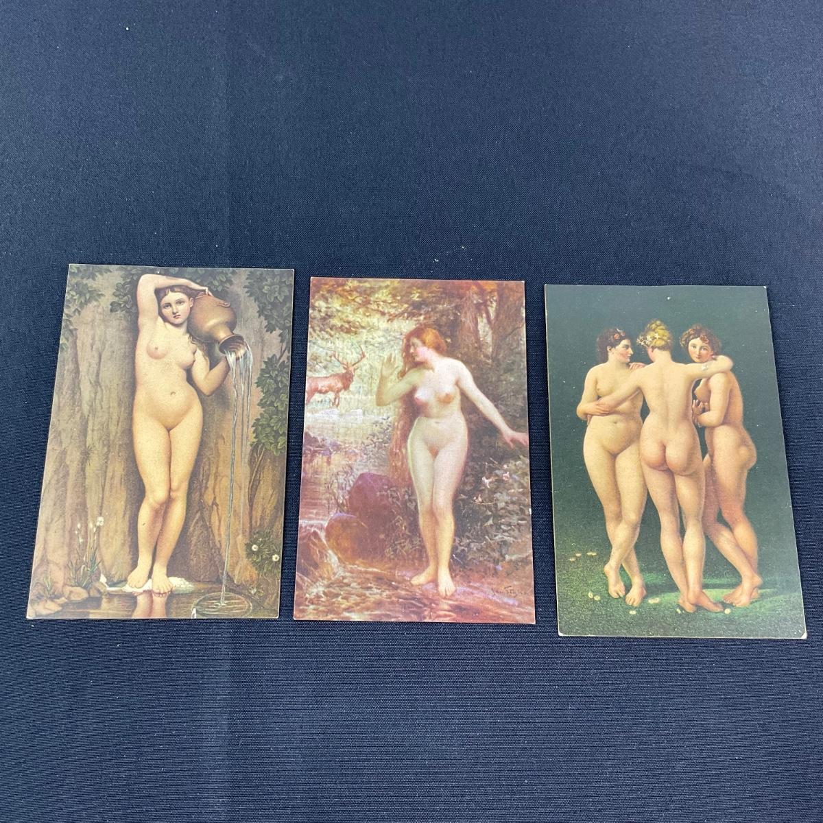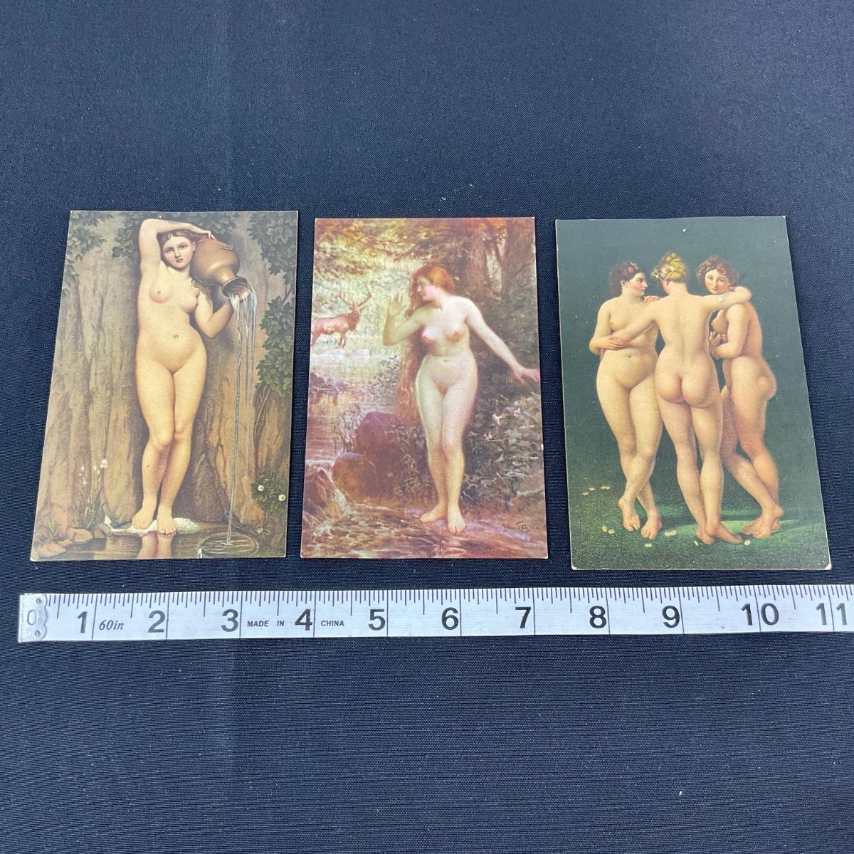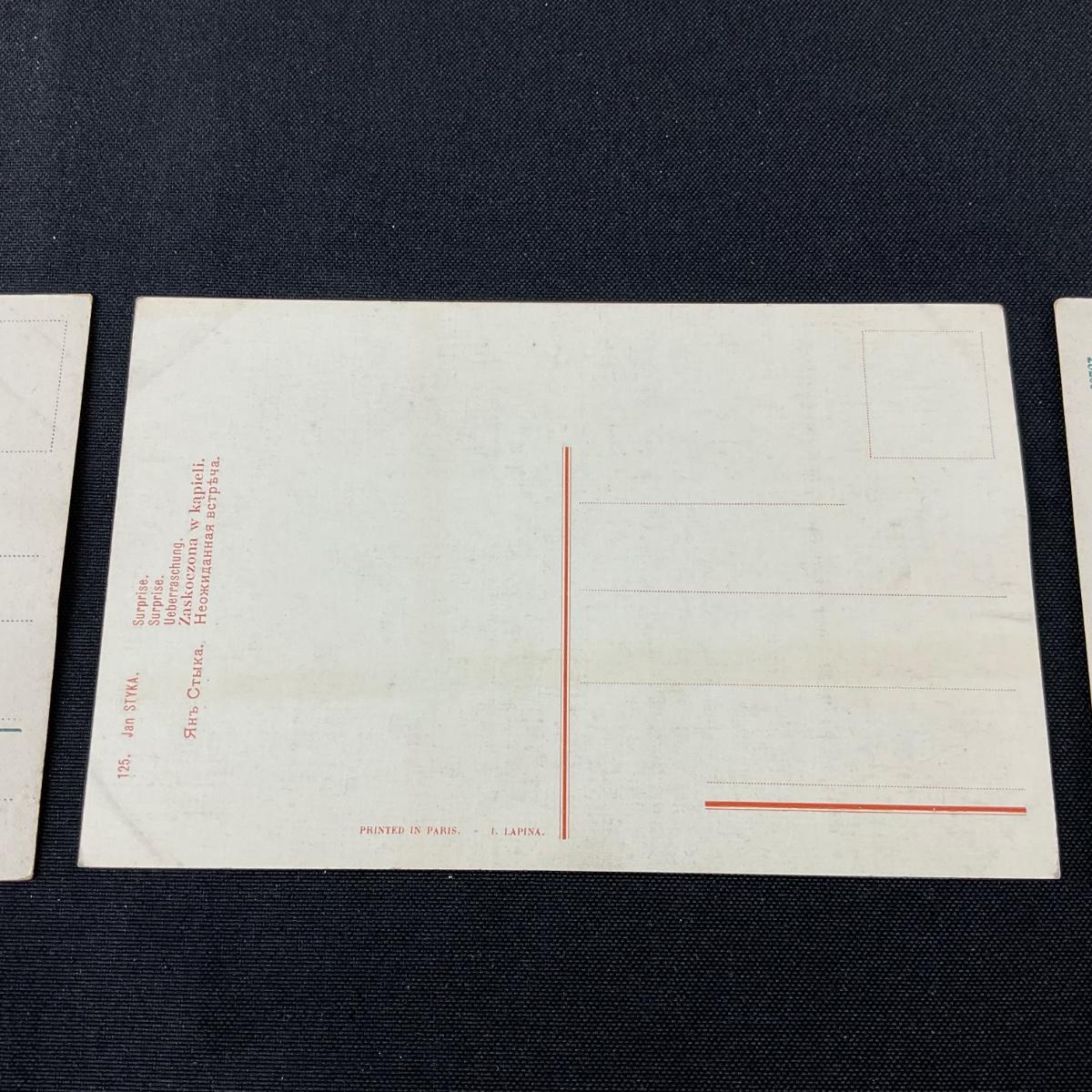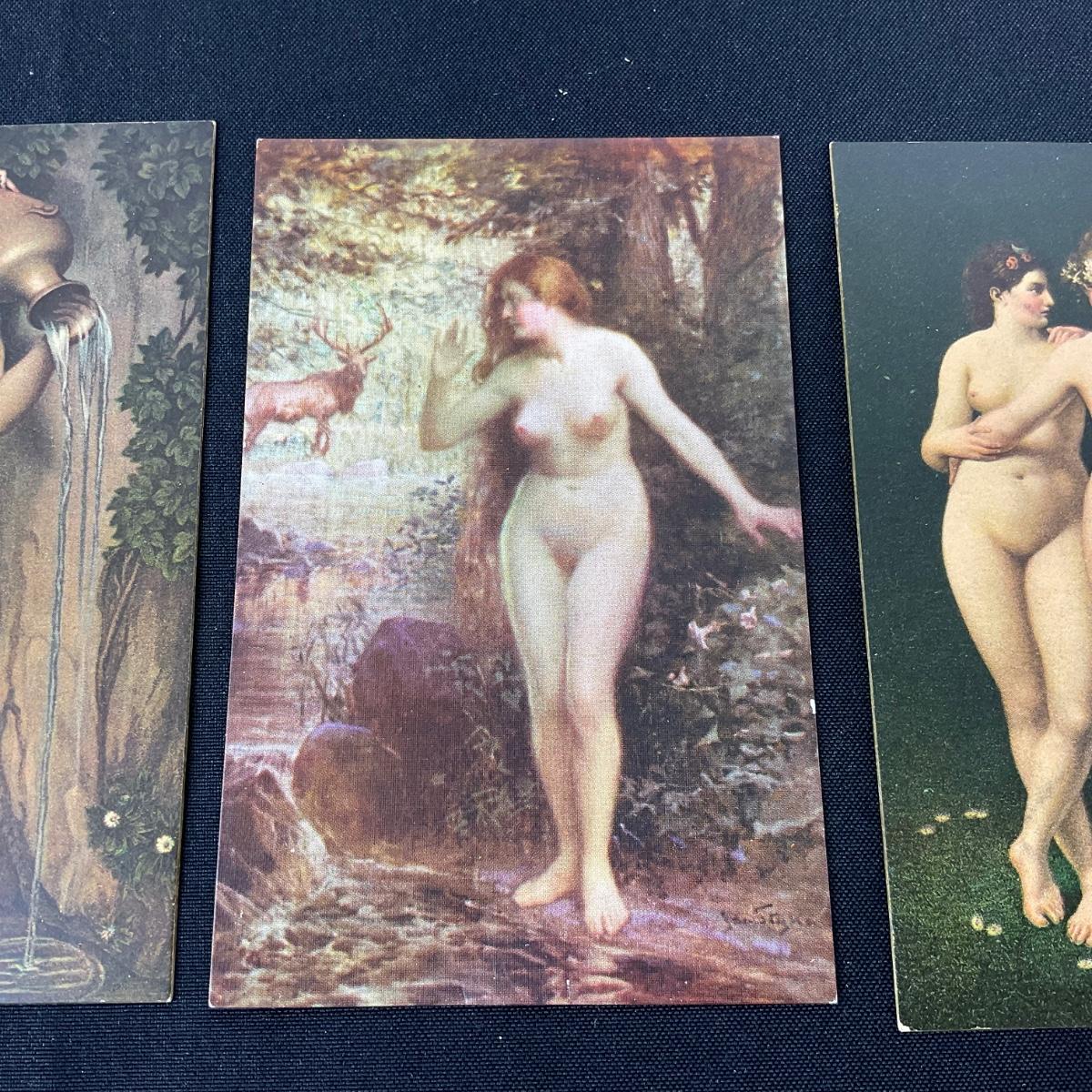 Three vintage Art Nouveau style postcards. Please see photos for details and condition. Any condition statement is given as a courtesy to a client, is an opinion, and should not be treated as a statement of fact. Reference to condition written, oral or within a condition report shall not be regarded as a full account of condition and may not include all defects, alterations, or restorations. Absence of a condition report does not imply a lot is flawless or lacking imperfections or damage. Katherine’s Auction & Appraisal Service shall have no responsibility for any error or omission. Returns shall not be accepted on the basis of condition. ::: Shipping is available on this lot. If you require shipping you must let us know at the close of the auction. We will coordinate with you after the item has been won. Shipping fees will include insurance up to or exceeding the value of all items being mailed. If you have any questions regarding this lot please contact the auctioneer either via this website, by direct email or by phone. PICK UP TIMES and other important information can be found in the TERMS and DESCRIPTION of the auction. Please take a look for pertinent information. Thanks!