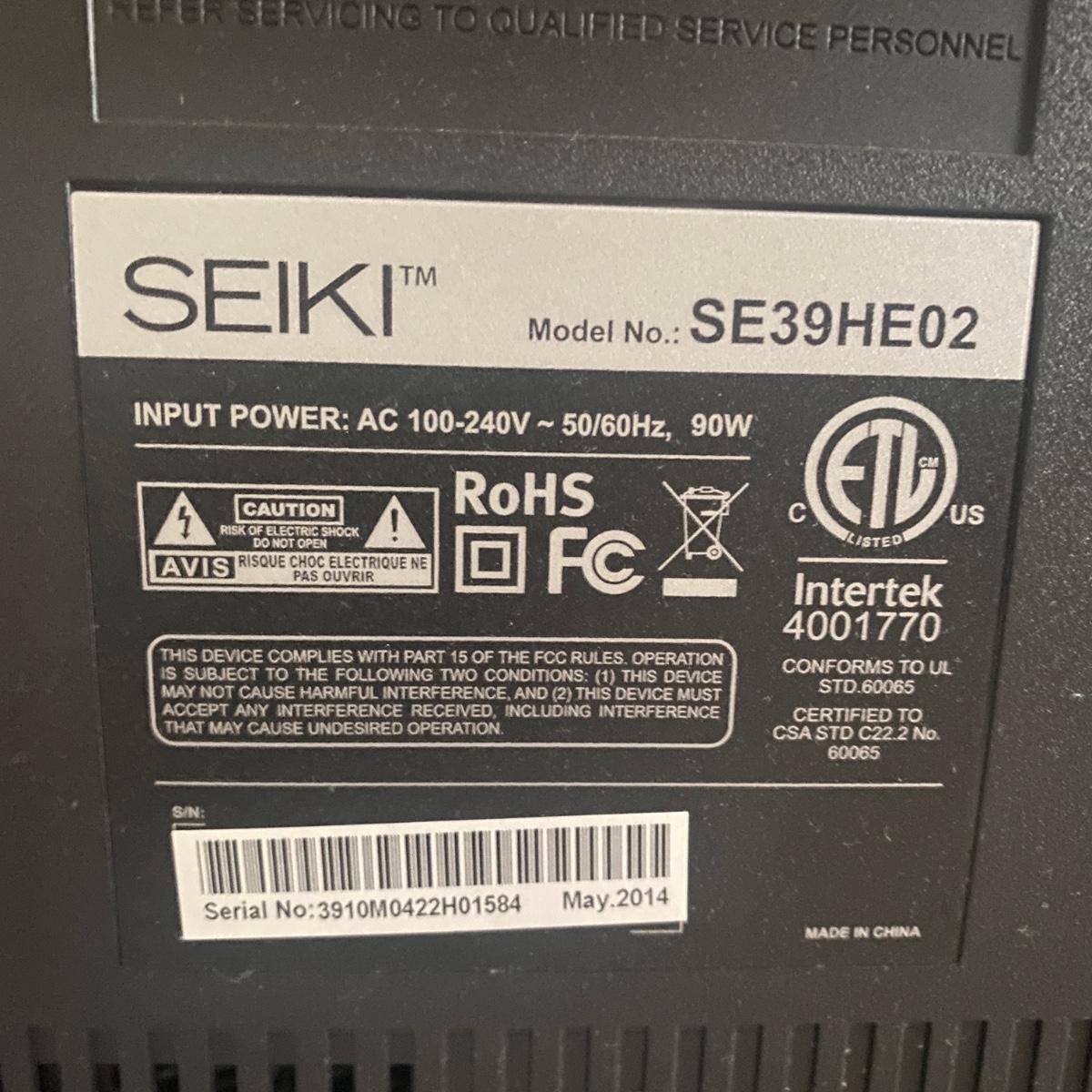 40” TV by Seiki. On stand. Includes remote. Powered on when tested. Local pick up only.