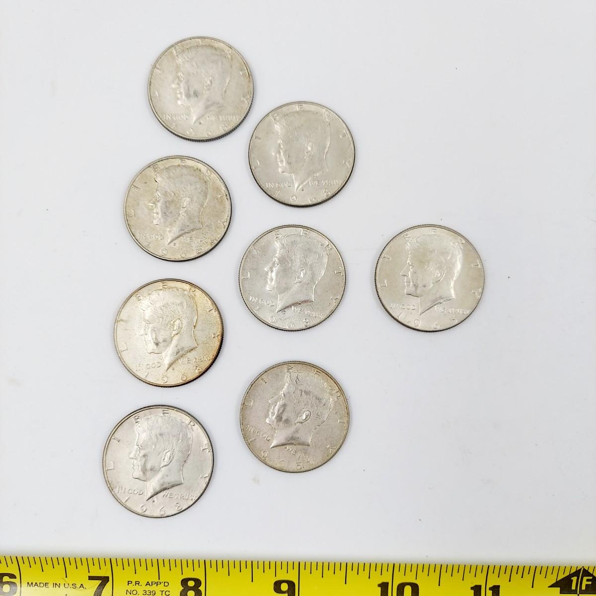 40% SILVER 1963, 65 & 66 JFK 1/2 DOLLARS - 8 PC