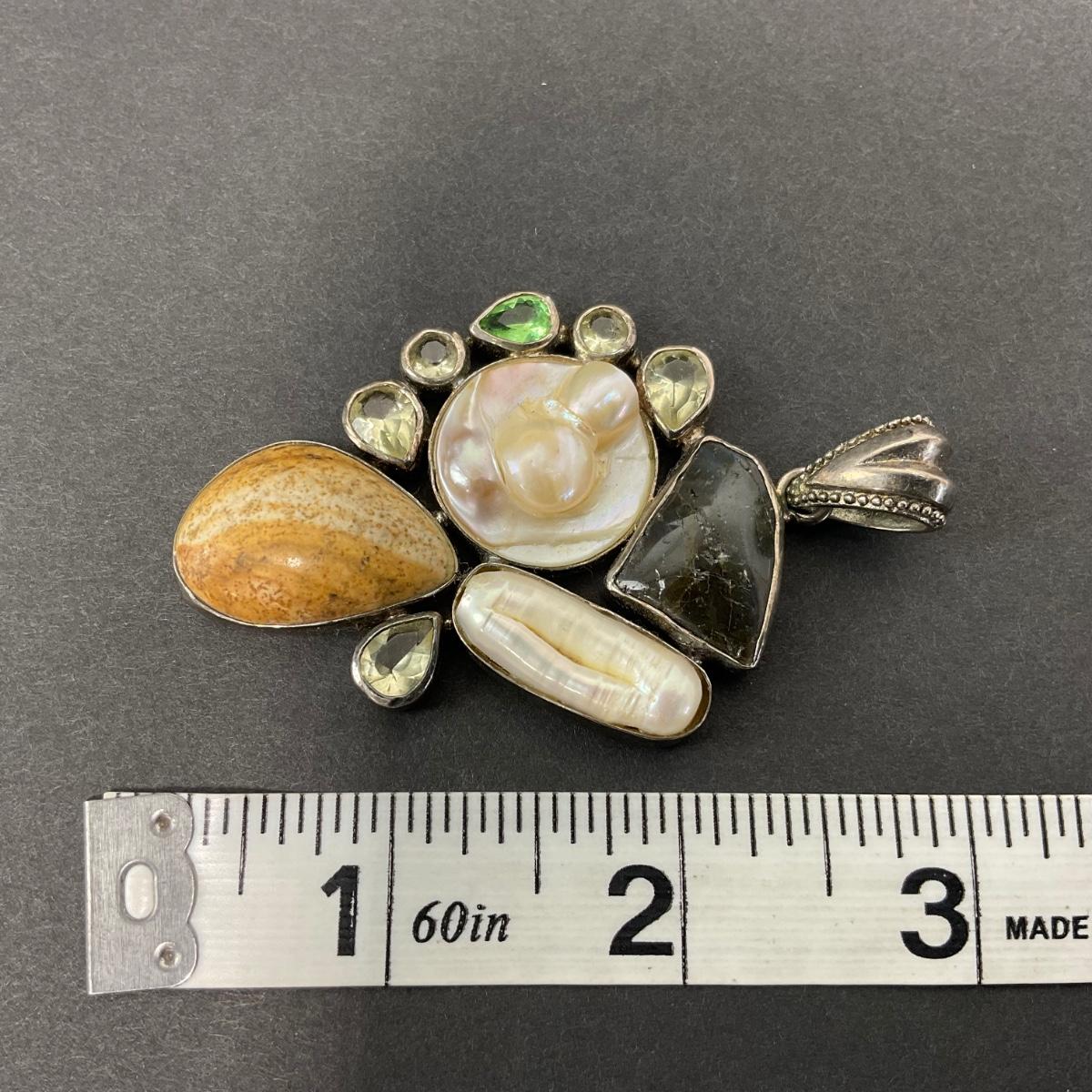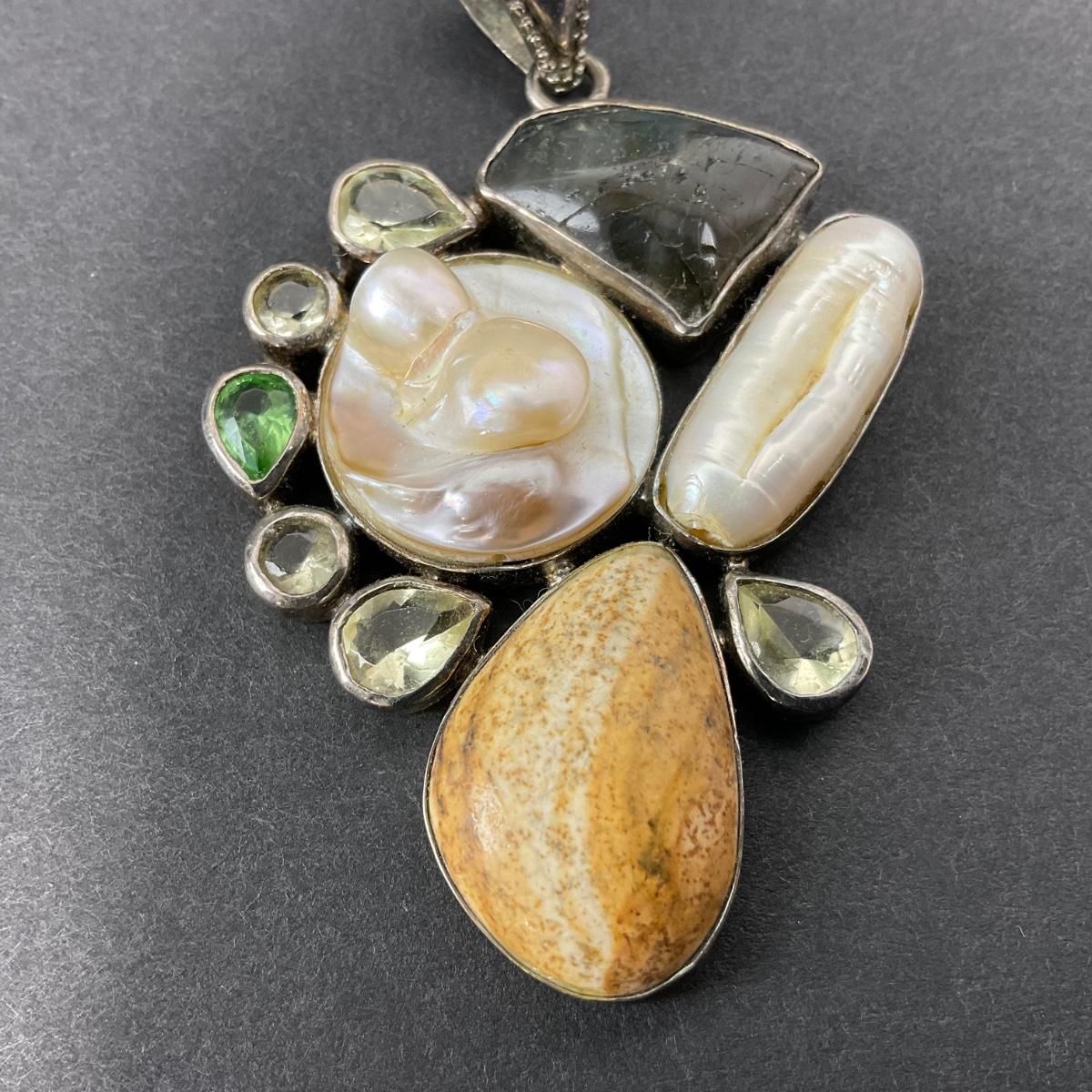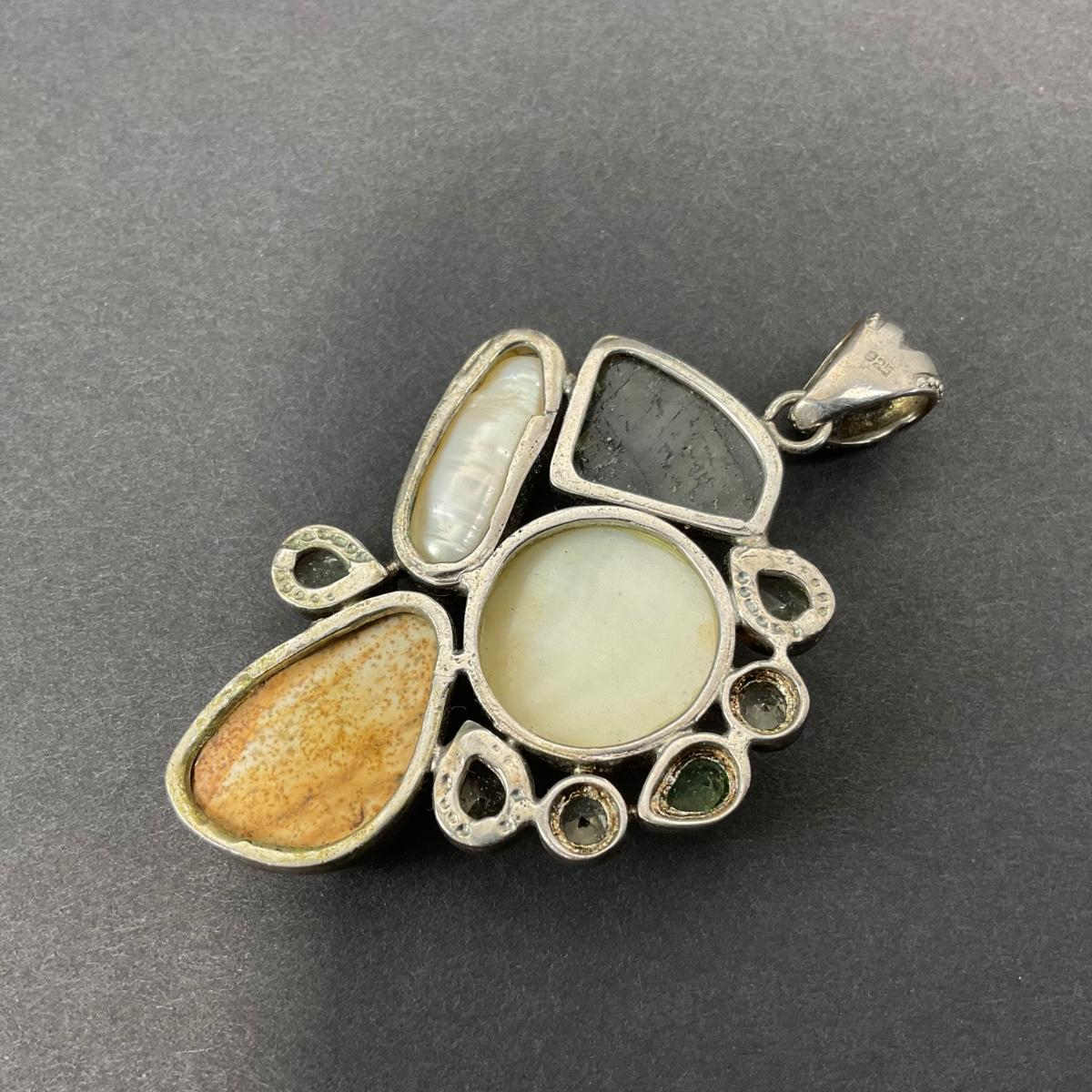 -40- SILVER | 925 Sterling Necklace Pendant With Polished Stones & Pearl