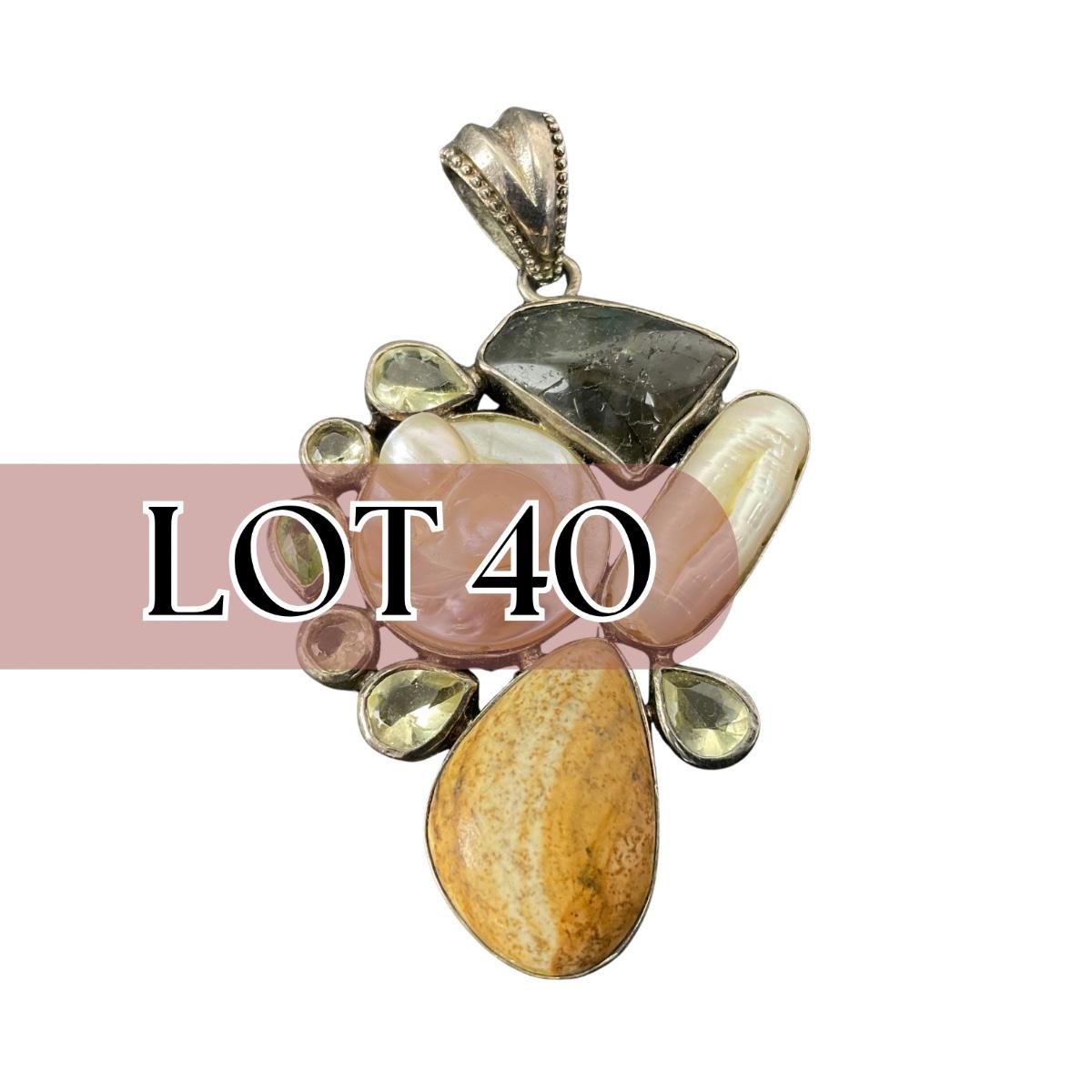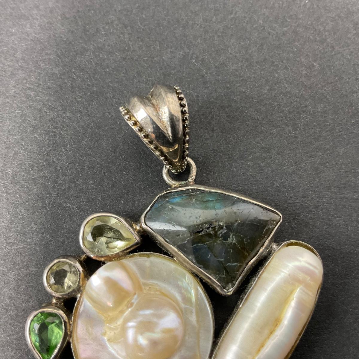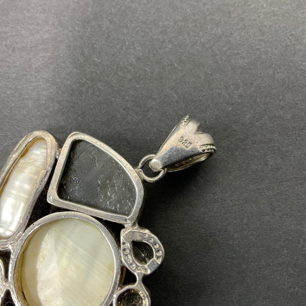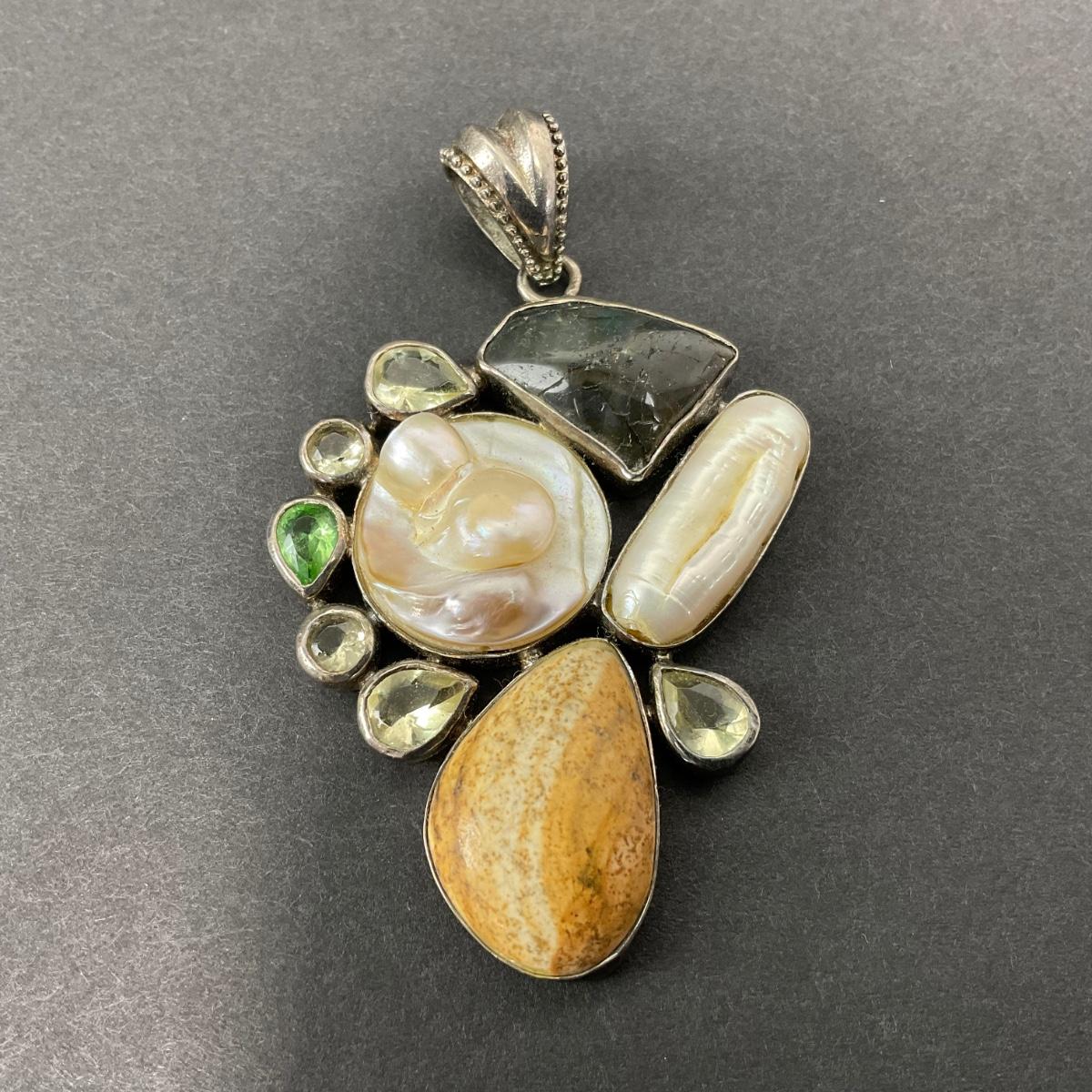 -40- SILVER | 925 Sterling Necklace Pendant With Polished Stones & Pearl