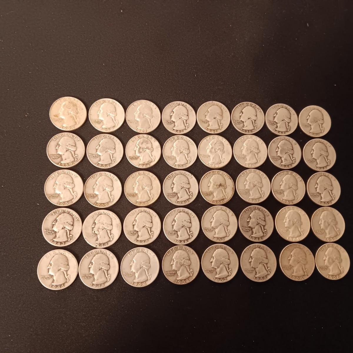 40 SILVER WASHINGTON QUARTERS MIXED DATES