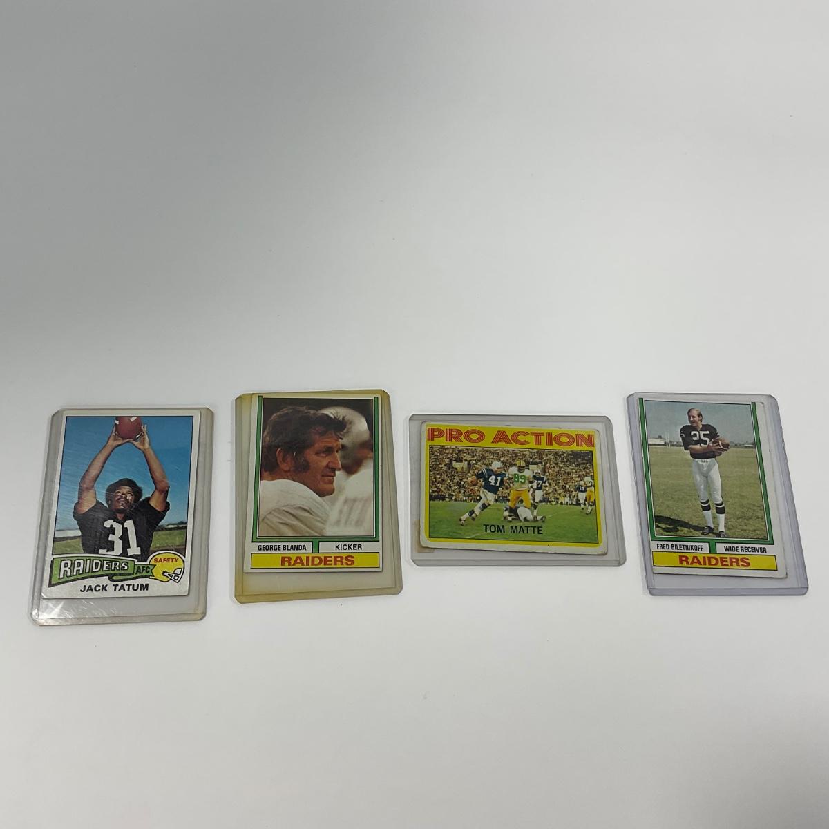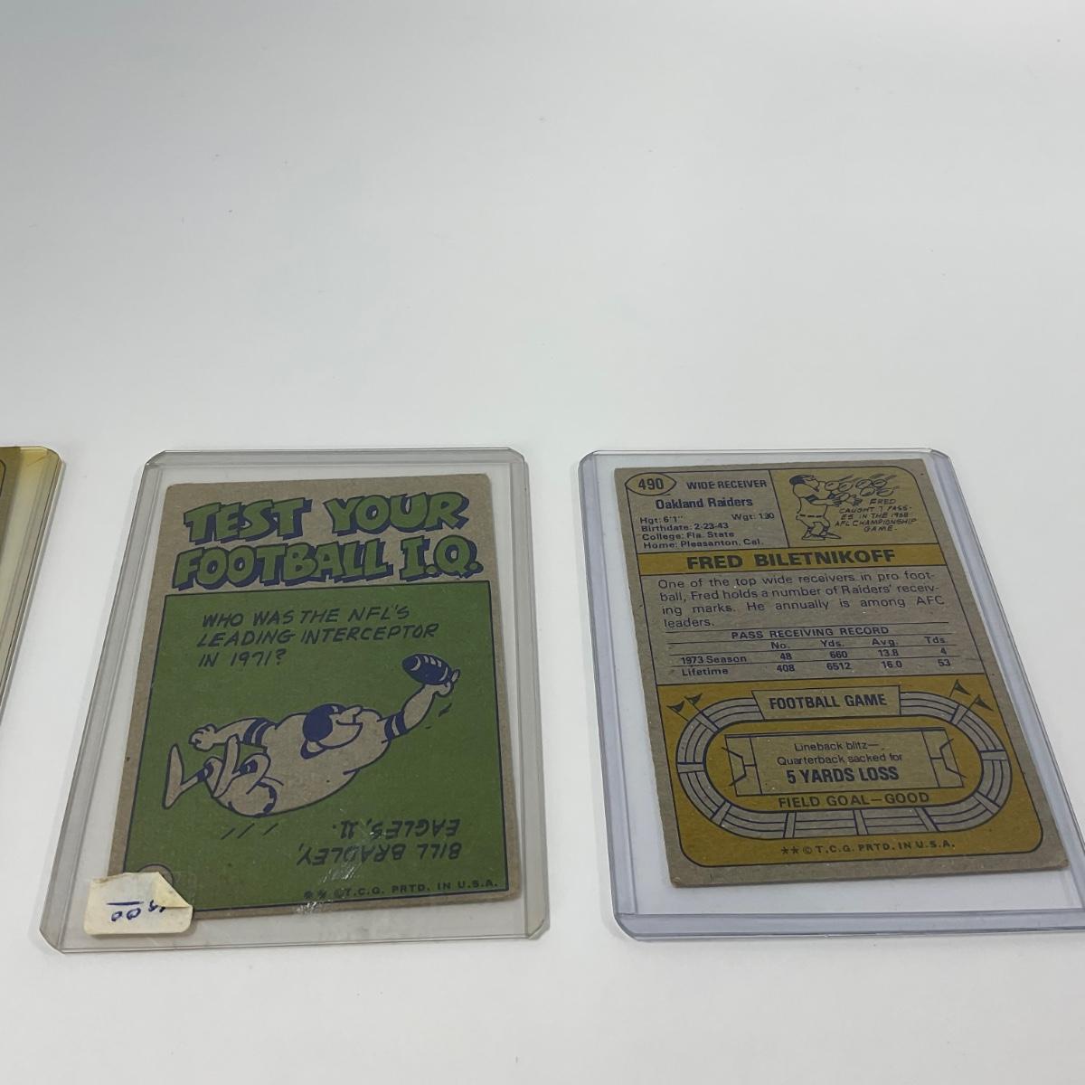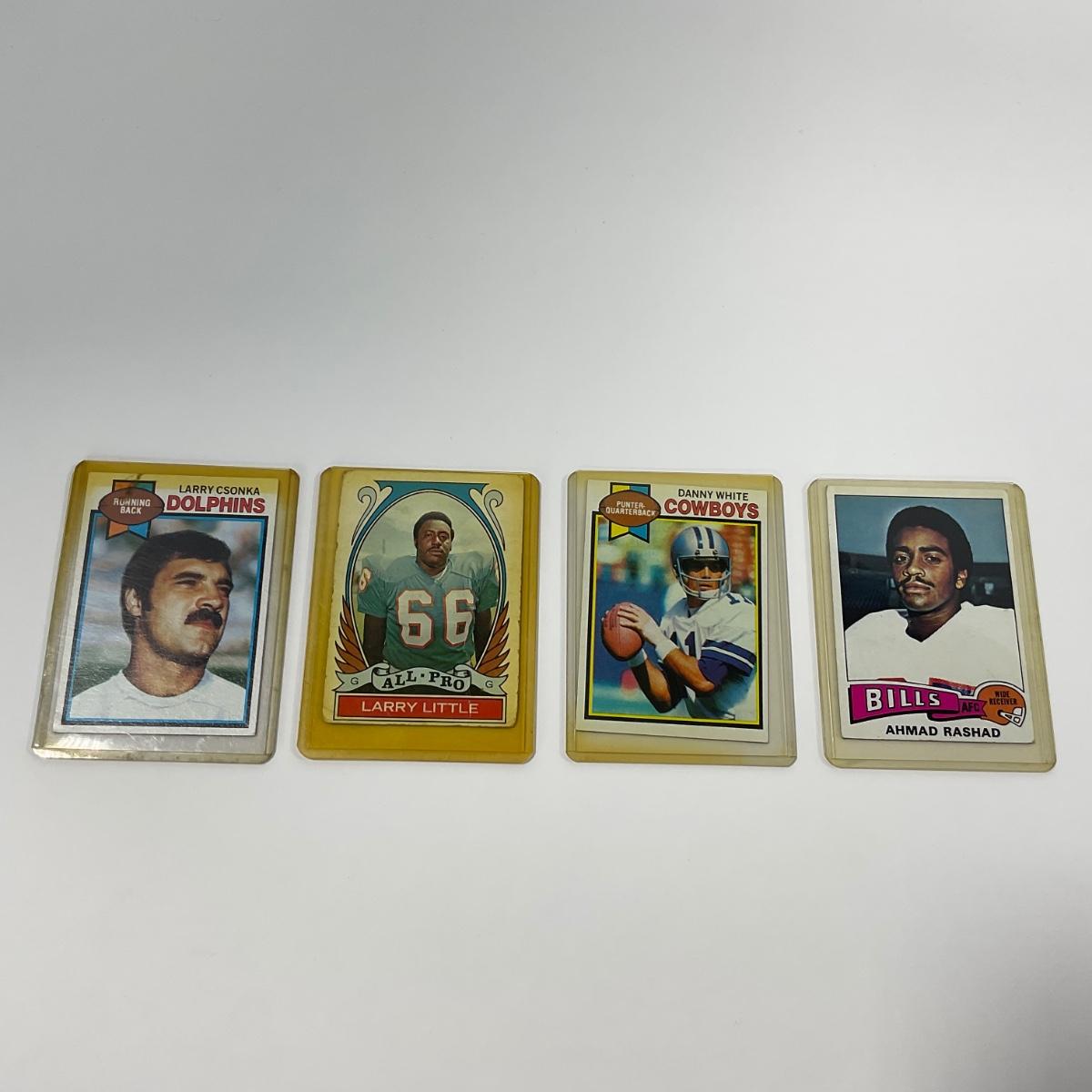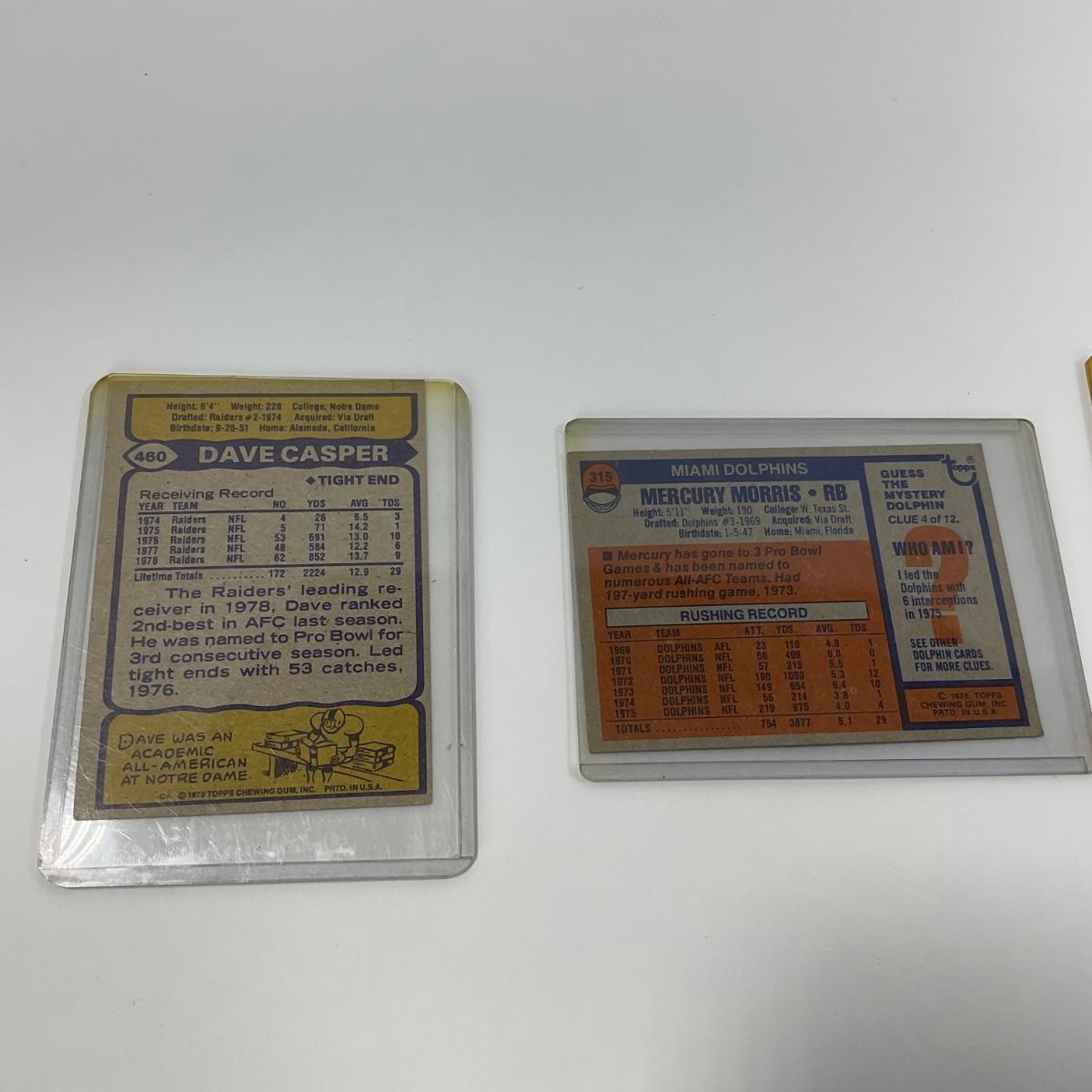 15 vintage 1970’s football stars / hall of famer cards. In plastic sleeves. Please see photos for details and condition. ::: Shipping is available on this lot. If you require shipping you must let us know at the close of the auction. We will coordinate with you after the item has been won. Shipping fees will include insurance up to or exceeding the value of all items being mailed. If you have any questions regarding this lot please contact the auctioneer either via this website, by direct email or by phone. PICK UP TIMES and other important information can be found in the TERMS and DESCRIPTION of the auction. Please take a look for pertinent information. Thanks!