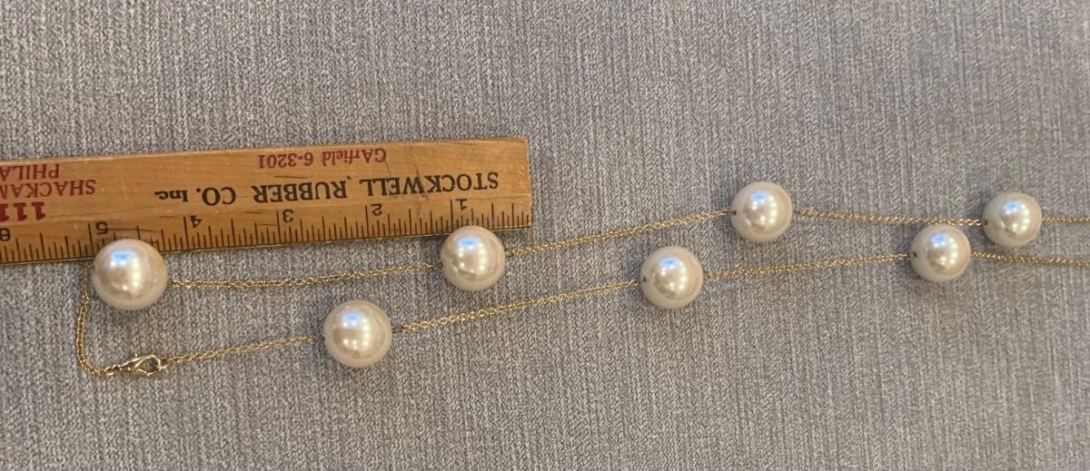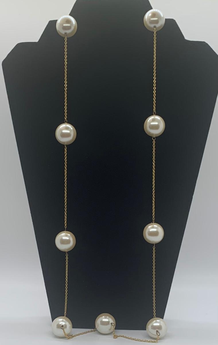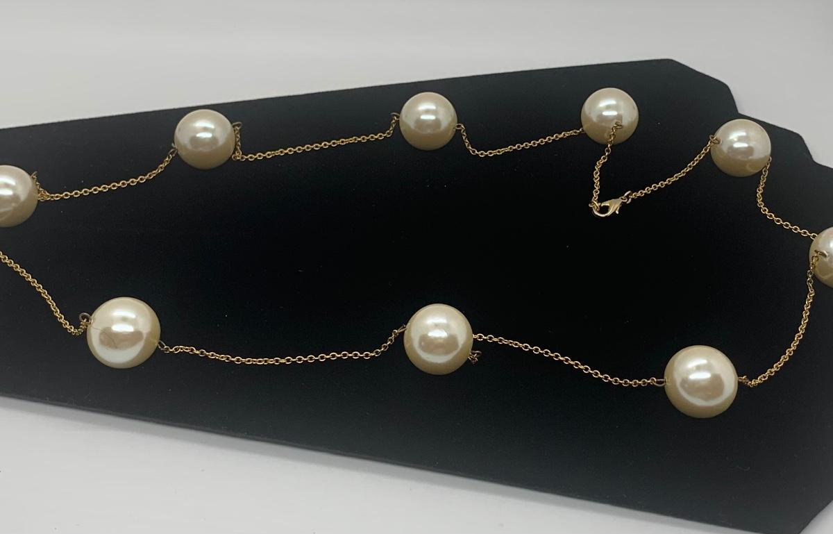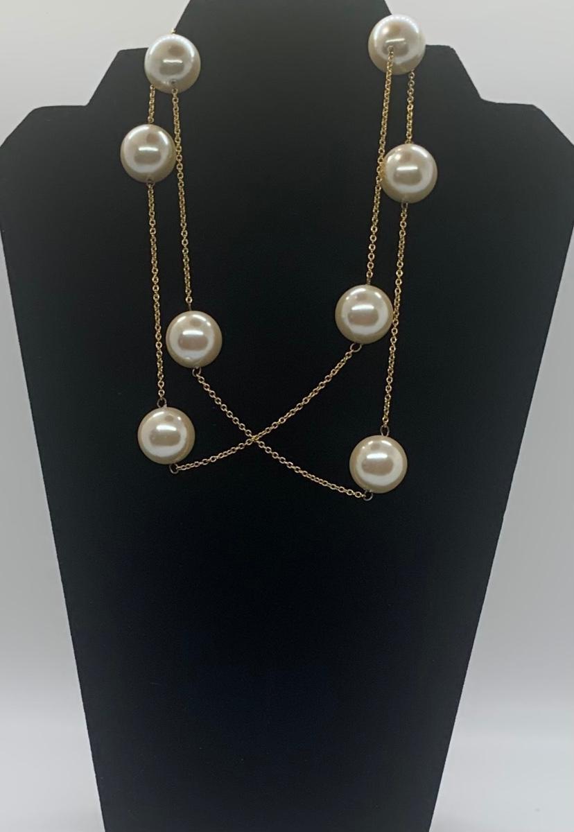 Multistrand marked Dell'Ollo and Costome yellow goldtone with large satin finish faux pearls and two watches need batteries