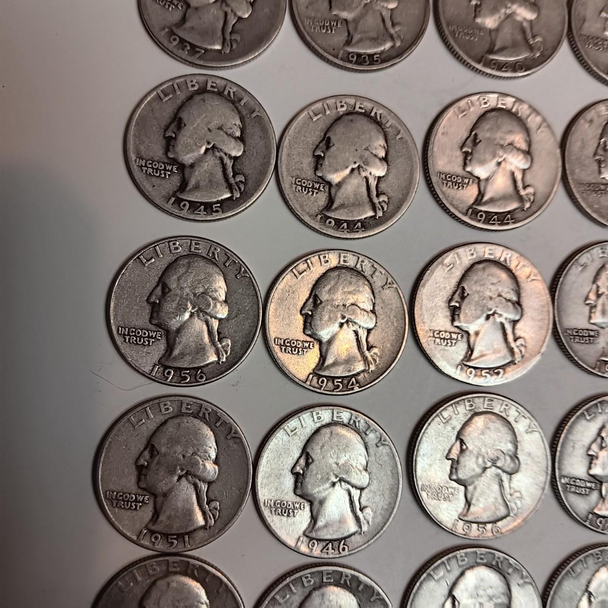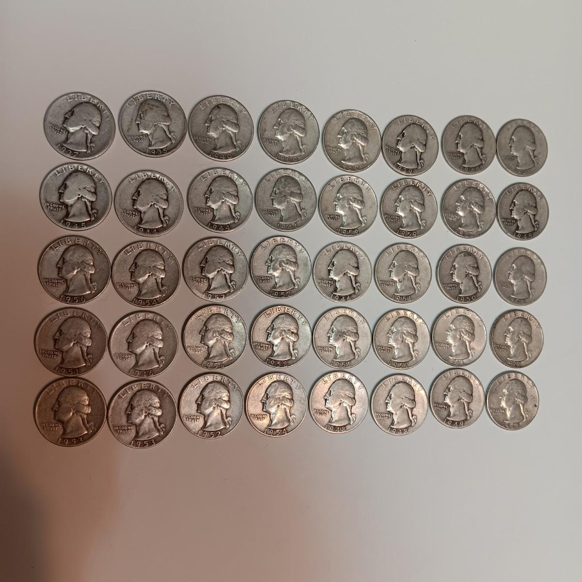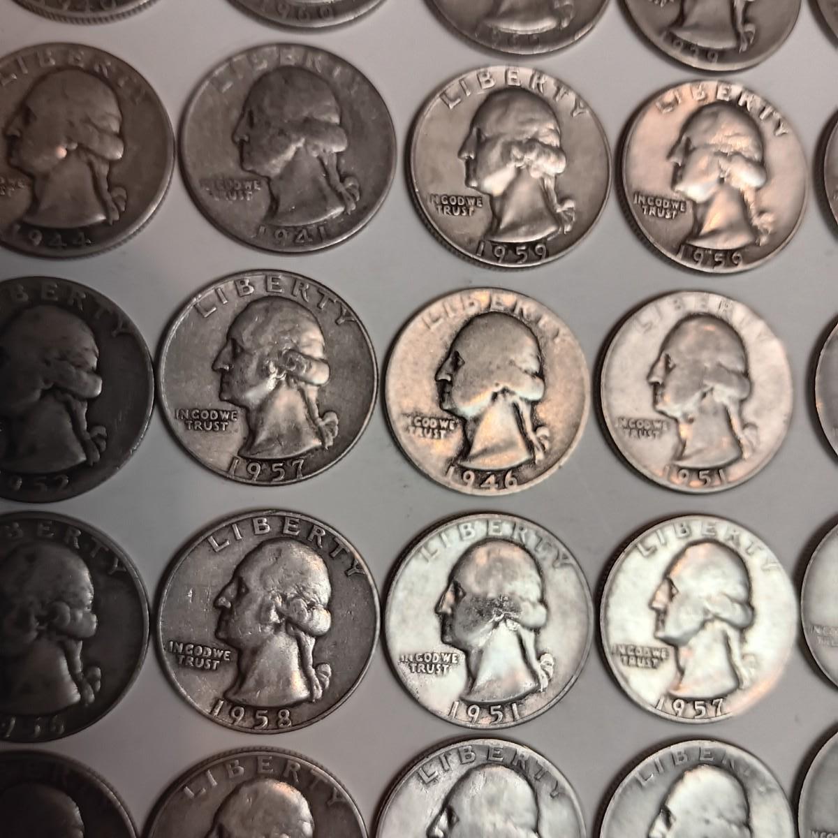 40 WASHINGTON SILVER QUARTERS, MIXED YEARS