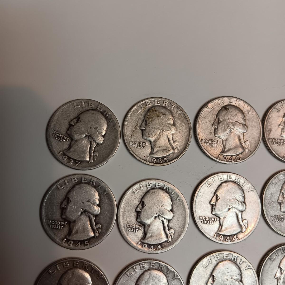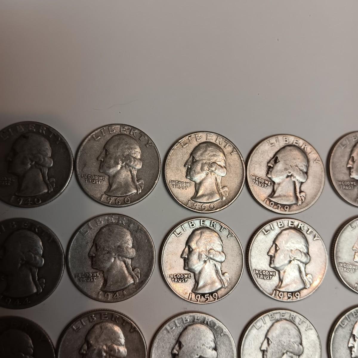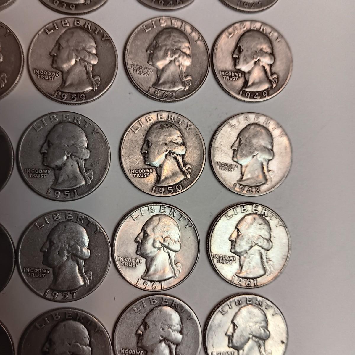40 WASHINGTON SILVER QUARTERS, MIXED YEARS