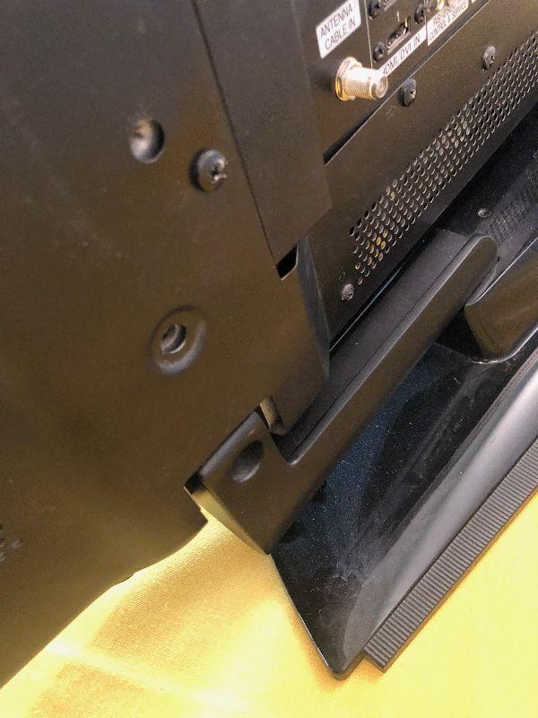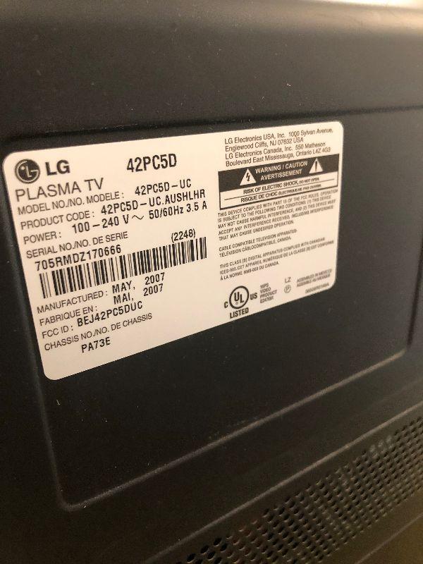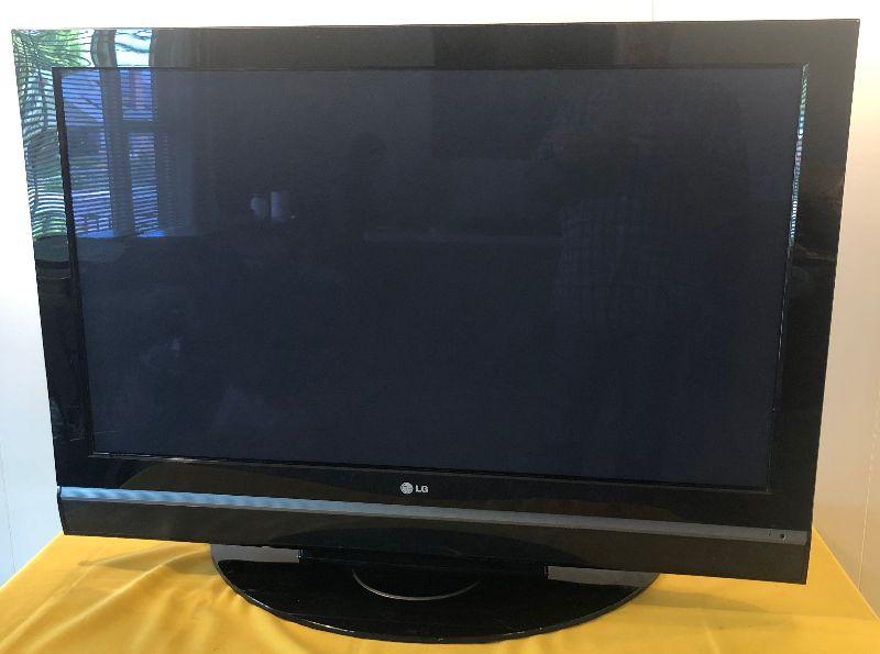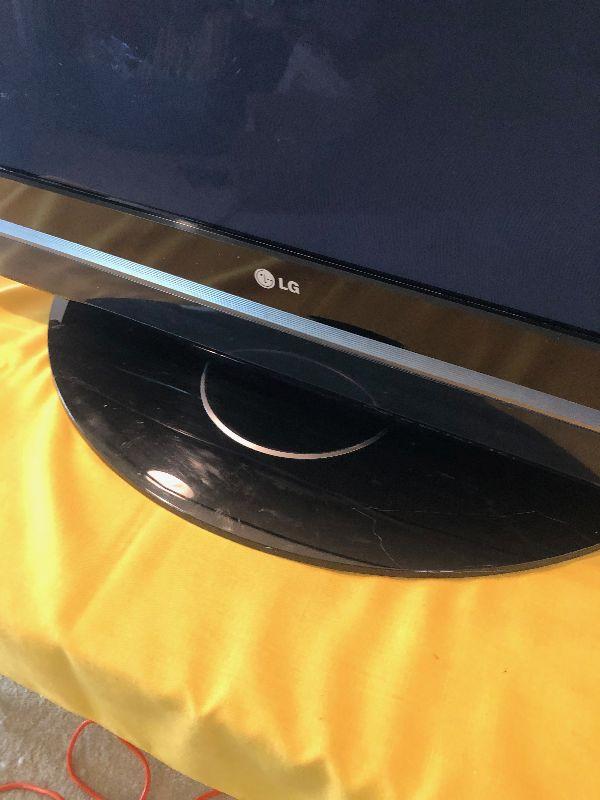 Large 42 inch on stand but has no PLUG!!!Plug probably got thrown out in the clean up.