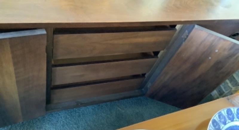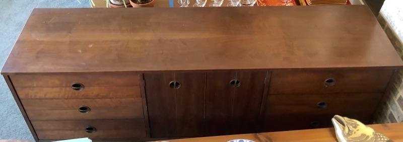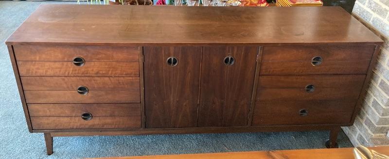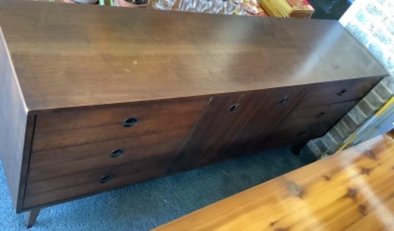 Mid-Century nine drawer long dresser measures 6’ long 30” high and 18” deep.