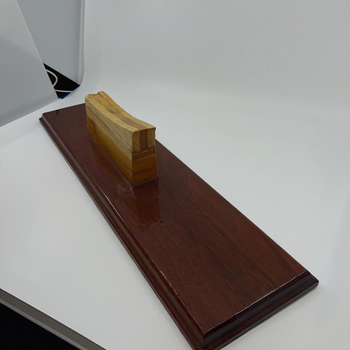 23.25”W x 8.25”D x 5”H on wooden display stand.