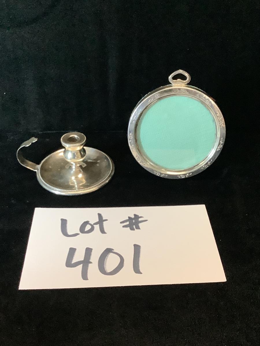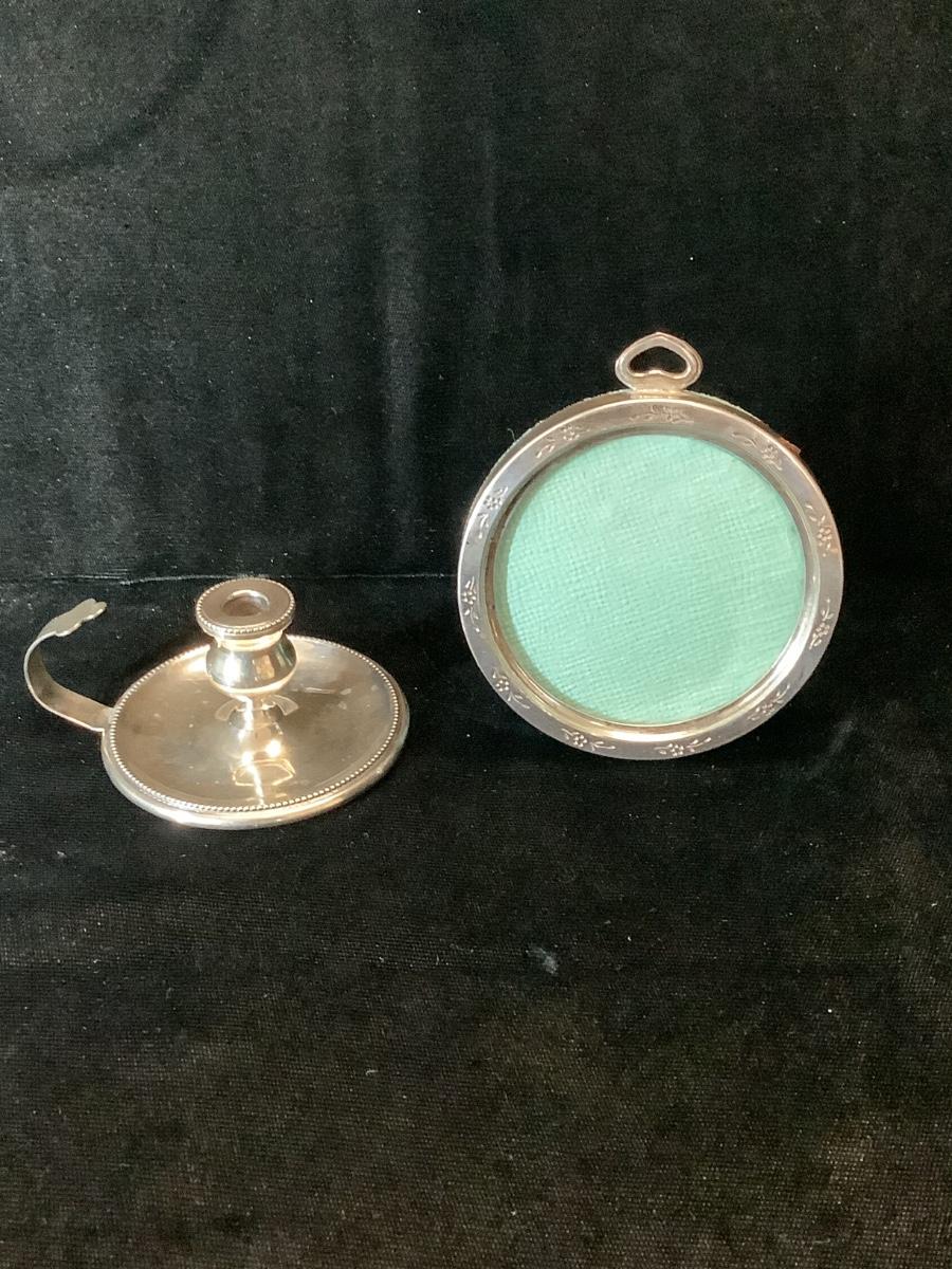 401 Vintage Sterling Silver Small Candlestick Holder & Small Lullaby 1907 Picture Frame