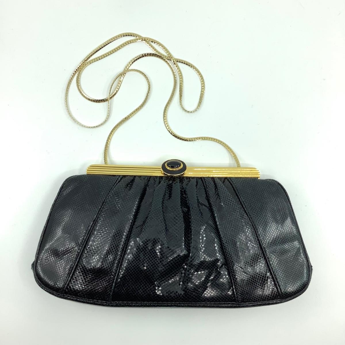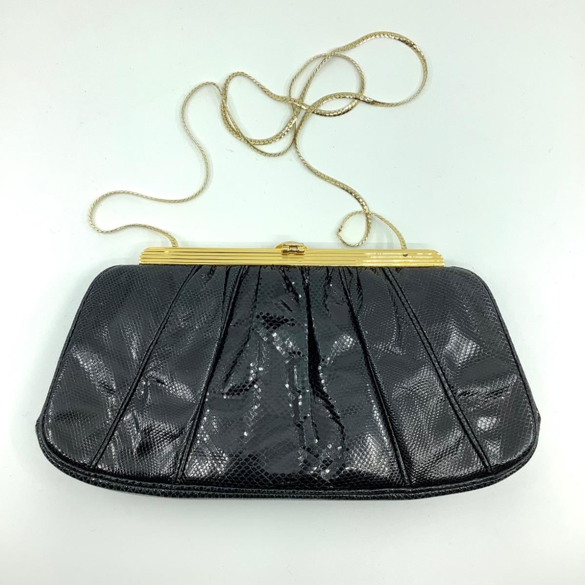 402 JUDITH LIEBER Small Black Snake Skin Leather Shoulder Bag