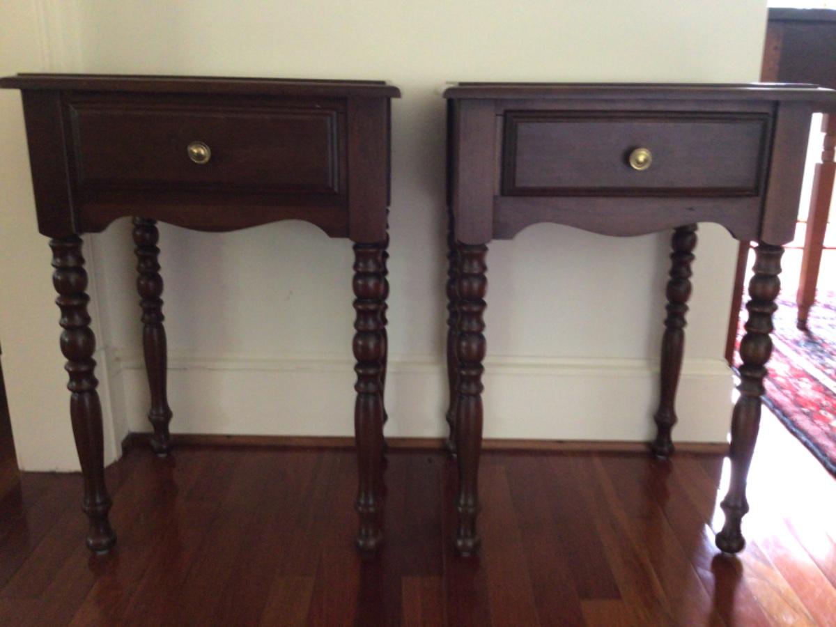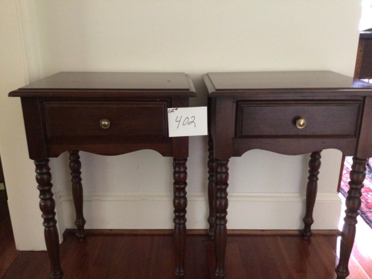 402 Pair of Single Drawer Cherry Finish End Tables/ Stands