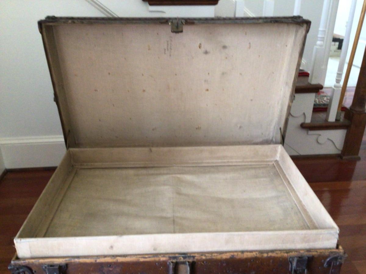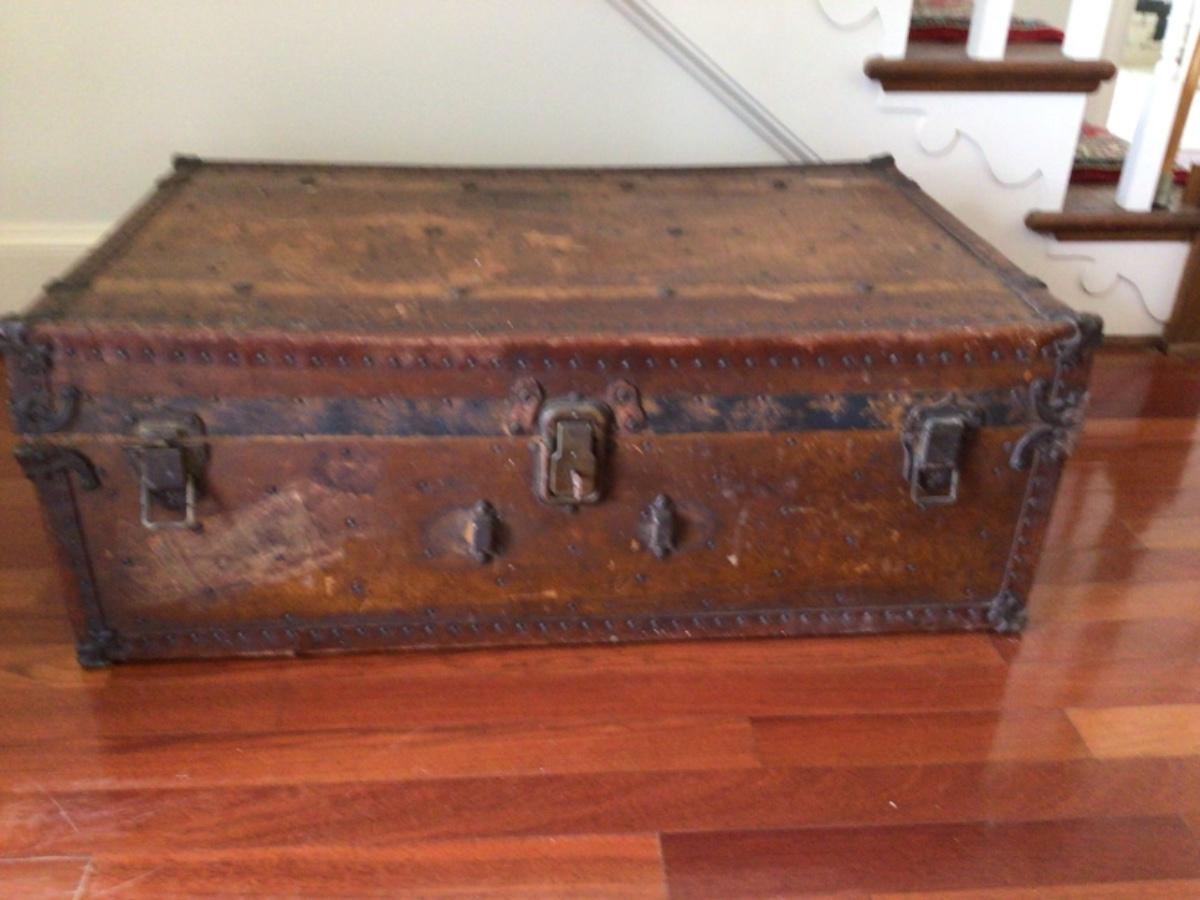Antique Trunk with Inside Tray with decorative metal trim and studs