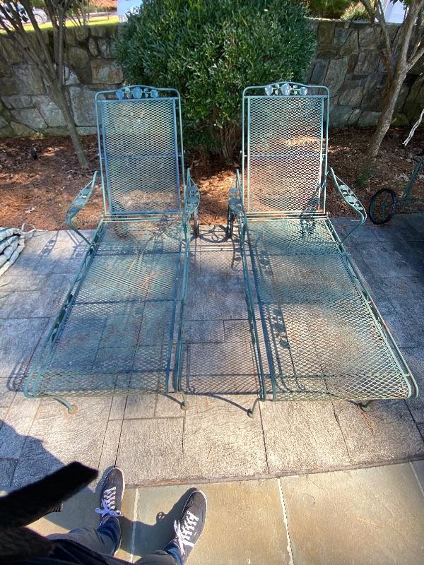 O- 402: Pair of Vintage Woodard Wrought Iron  Lounge Chairs
