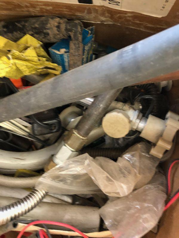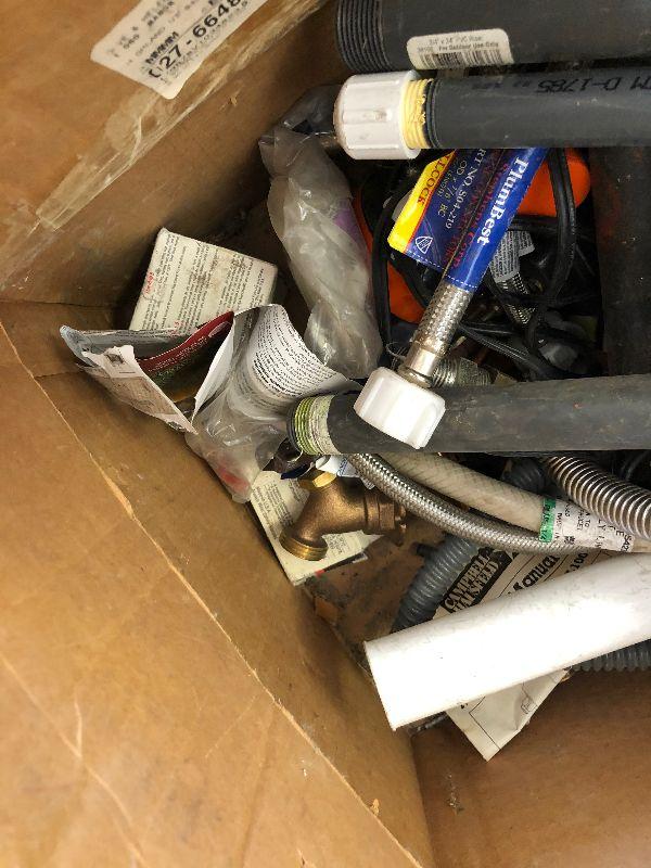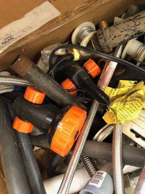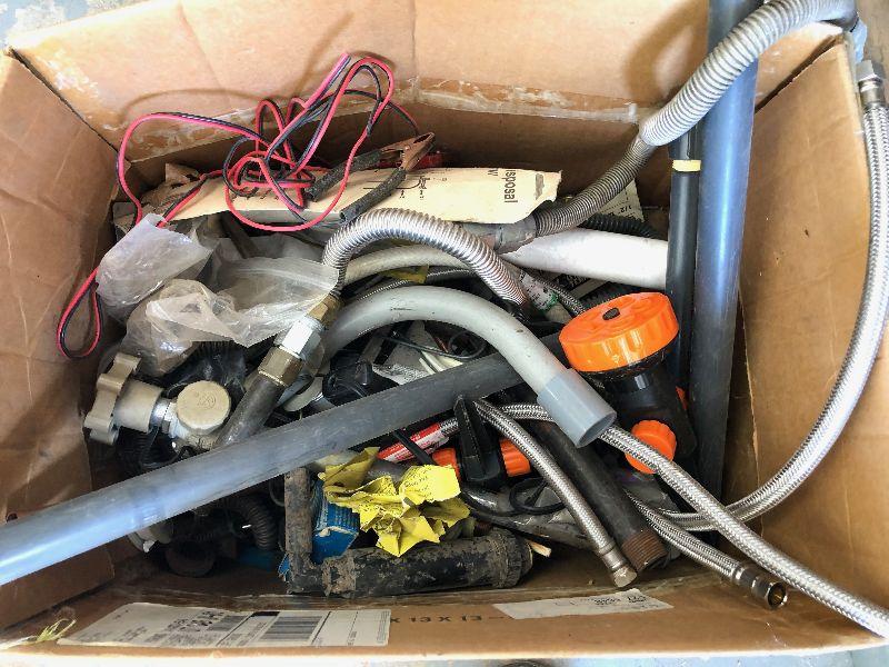 #404 Box full of plumbing parts; Gas and Electric