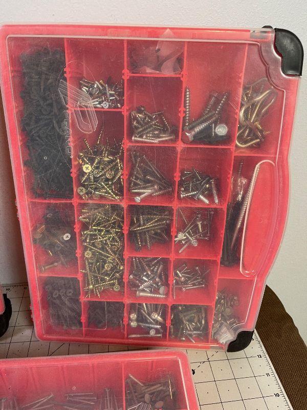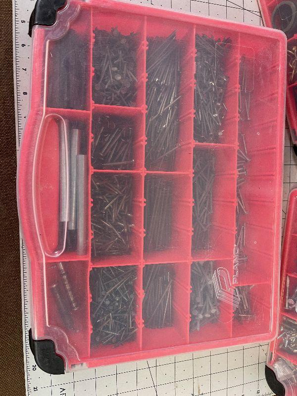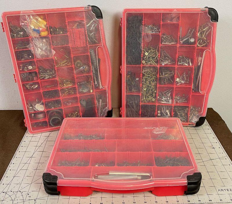 #404 Three Bins of Nails,Nuts, Bolts and Screws