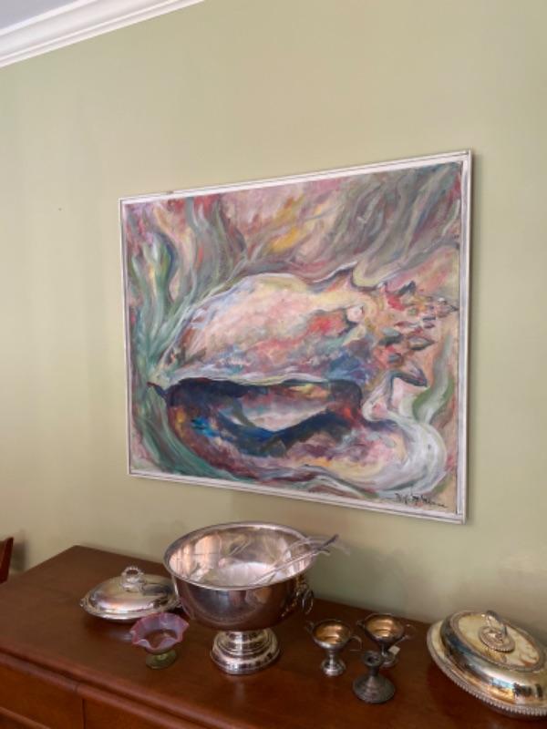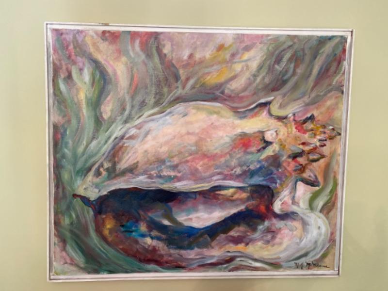 Large conch shell oil paintingFrame measures 37 and half inches wide by 32 inches tall