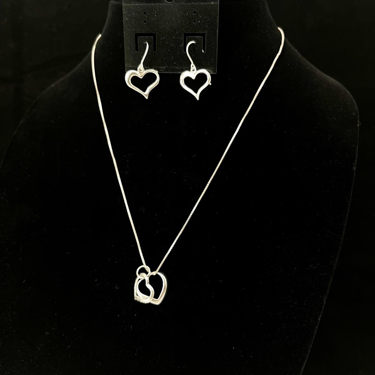 #408 - 925 Double Heart Pendant with 20” Sterling Box Chain and Heart Hoop Earrings