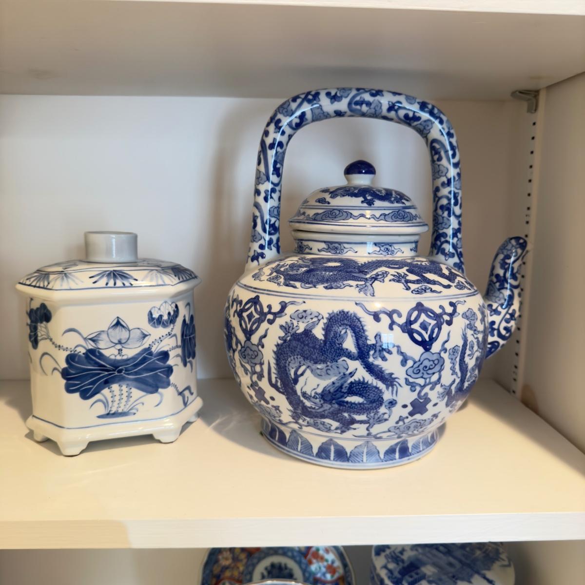 408 Blue and White Asian Teapot and Vase