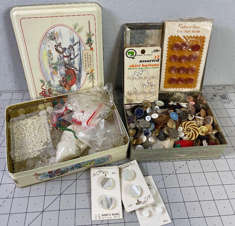 #408 Buttons and Beads in Vintage Tin