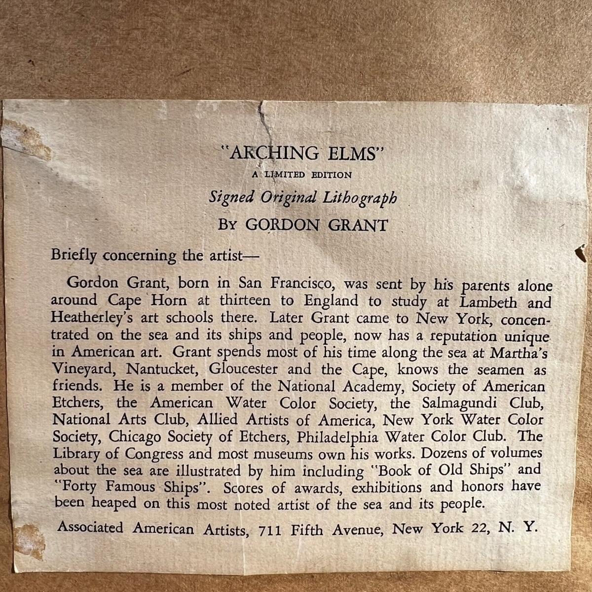 N408 Signed Gordon Grant 1940 Arching Elms Lithograph