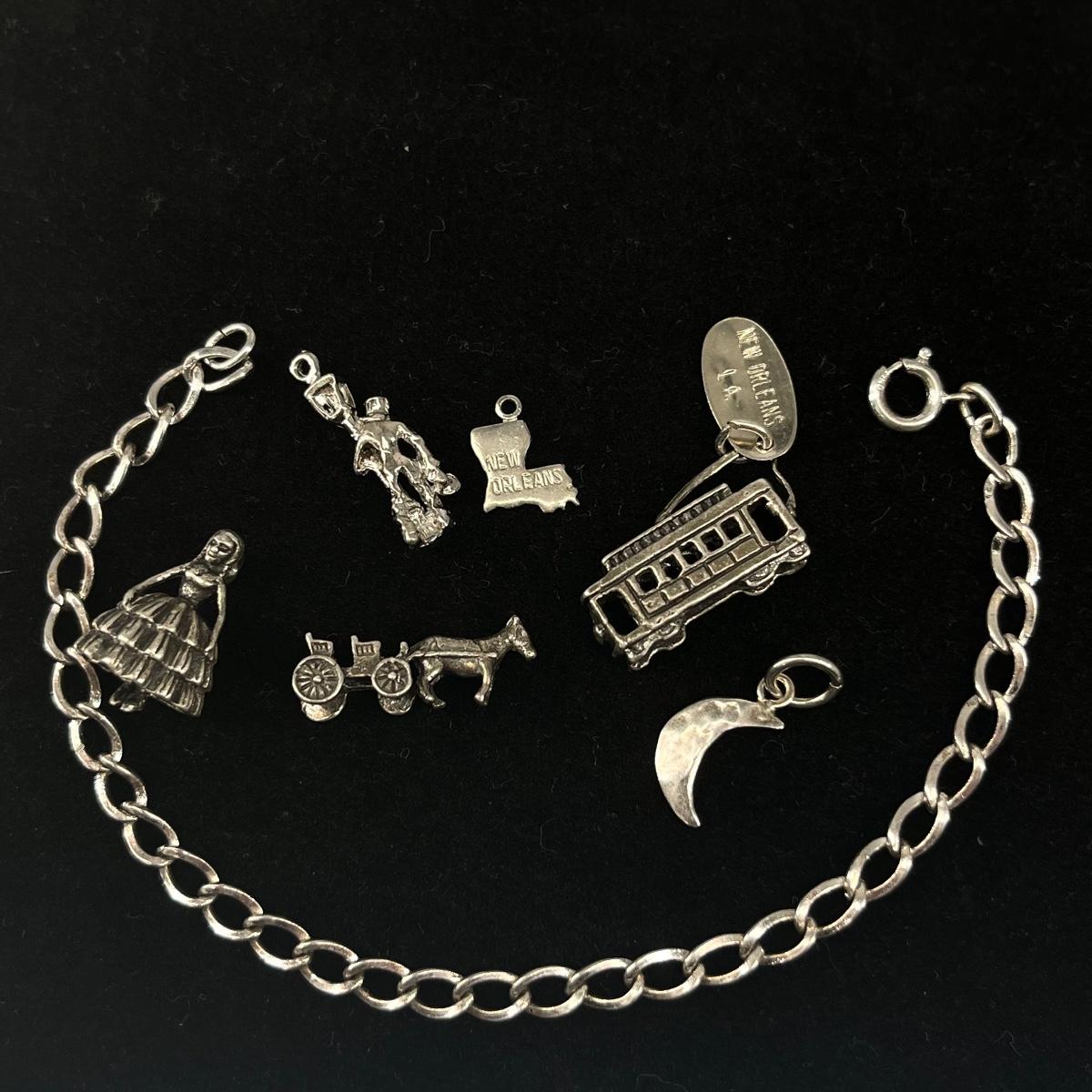 #409 - 925 7” Charm Bracelet and 6 New Orleans Charms