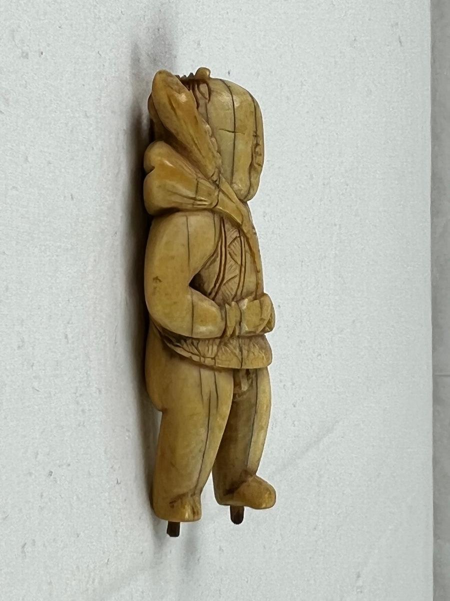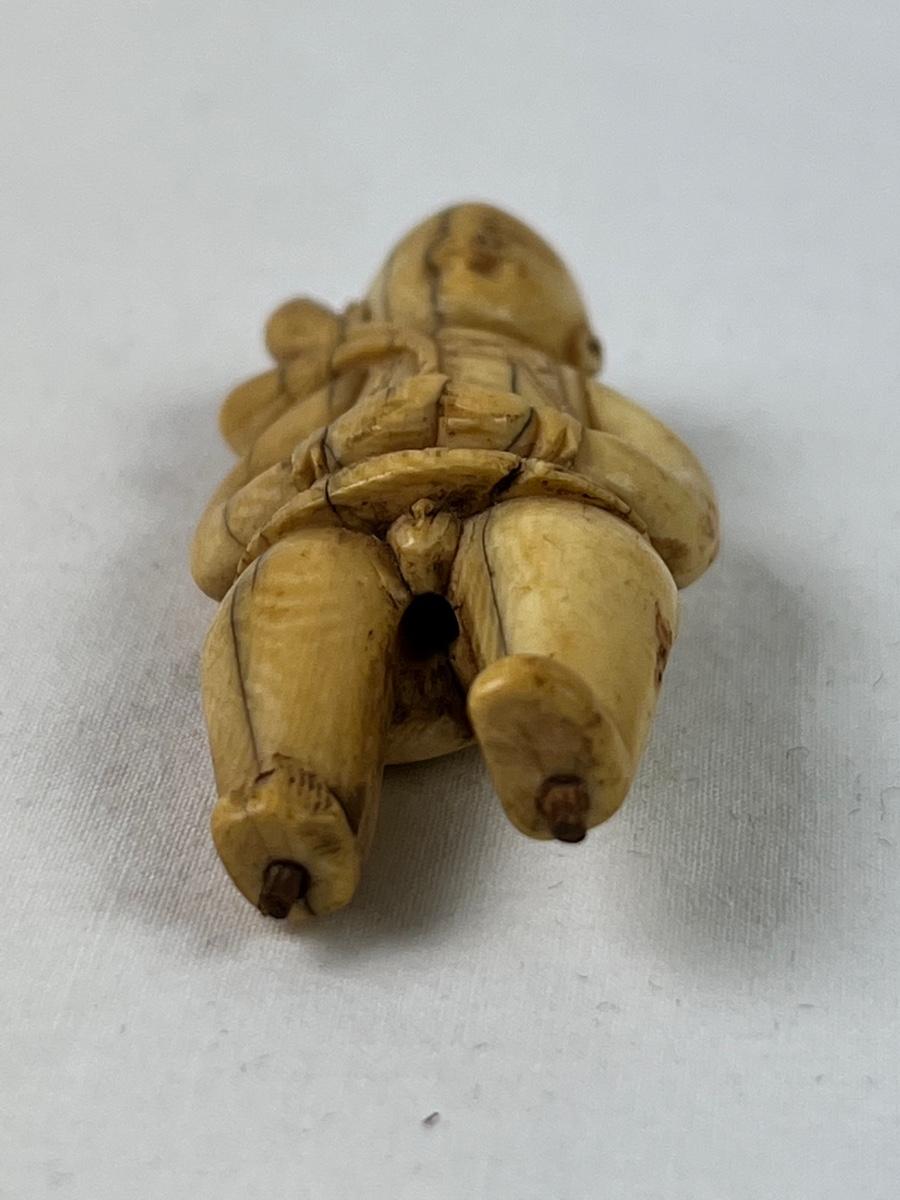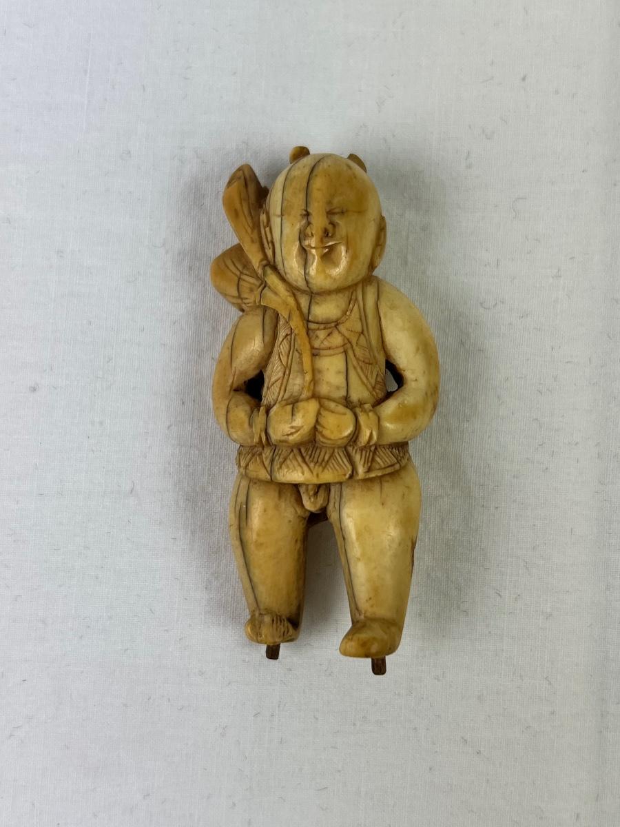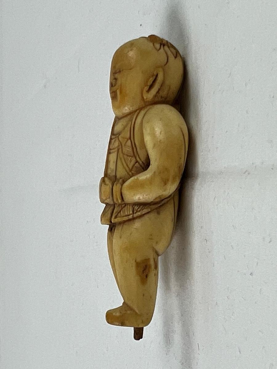 Antique Japanese Netsuke of young man. Has cracks from age and measures 2 1/4”.