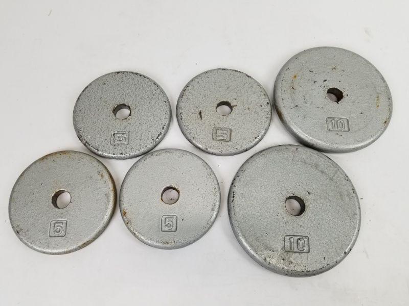 40lbs of Weight Plates: Four 5lb, Two 10lb