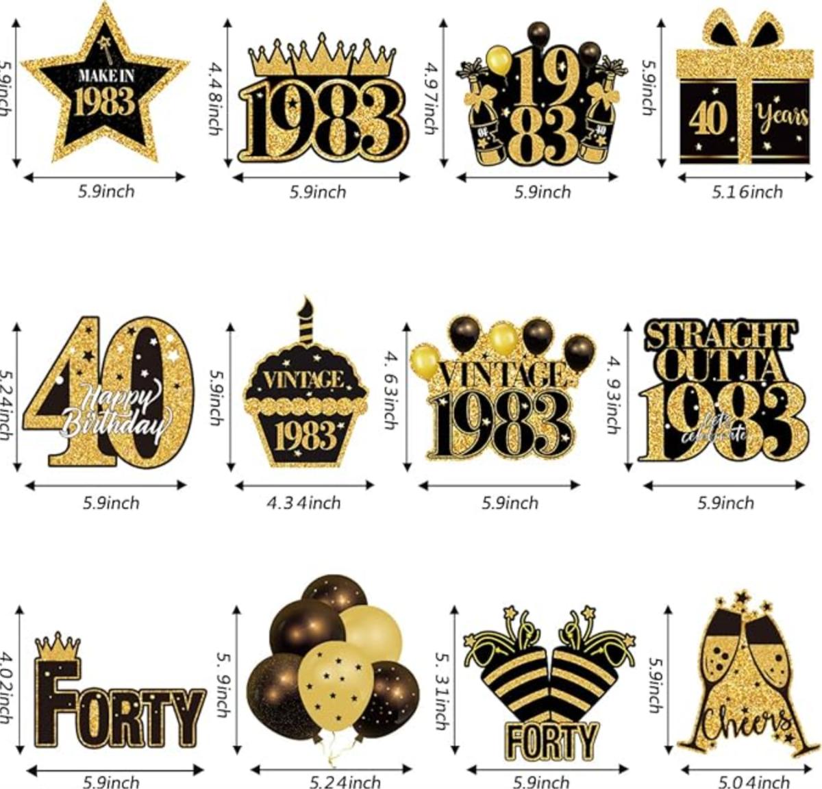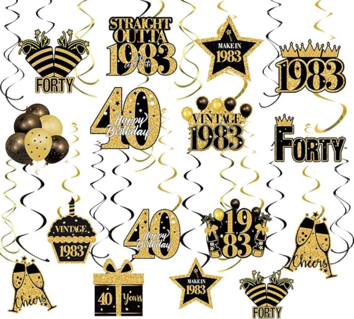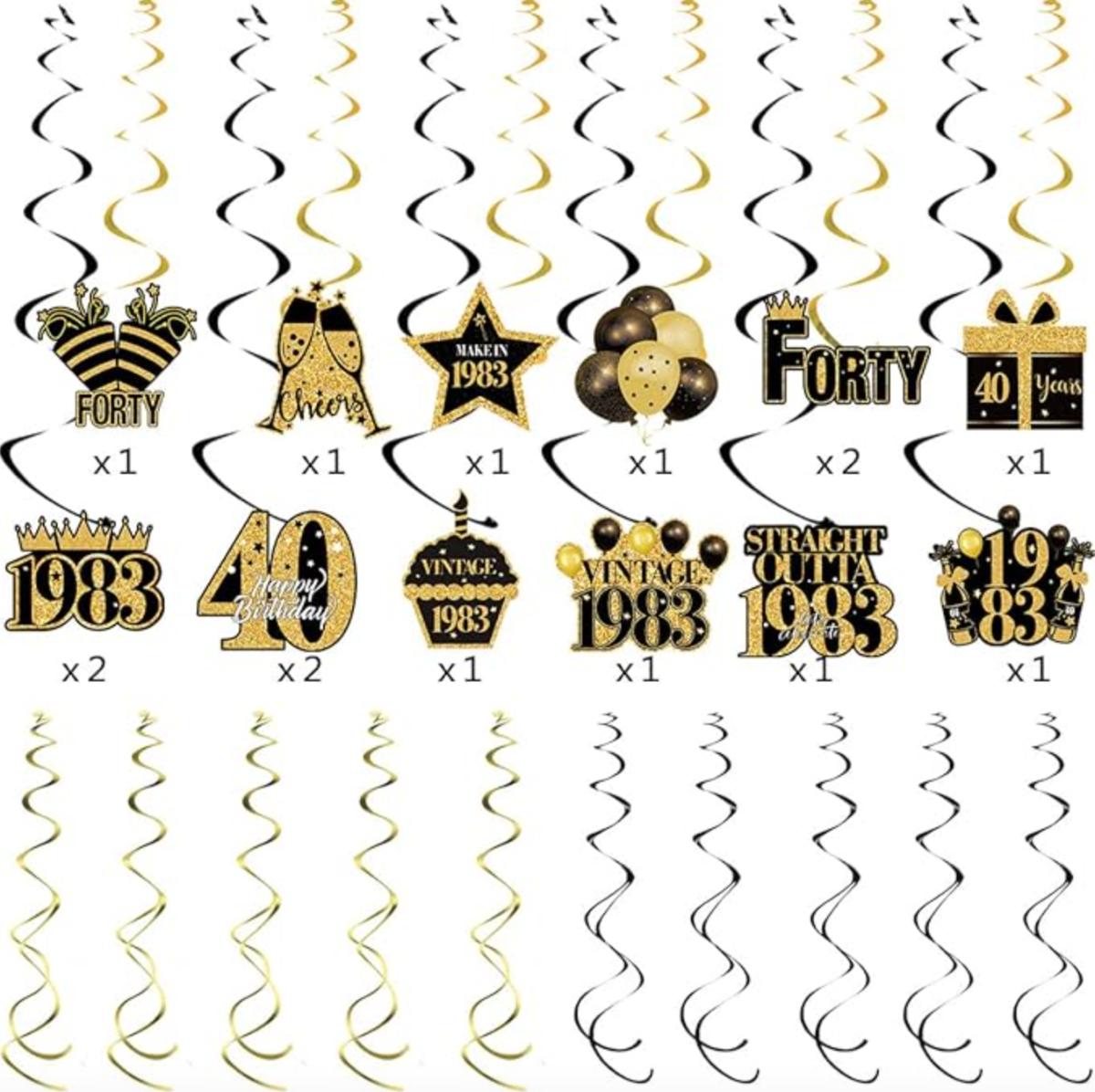 40pcs 40th Birthday Decorations Hanging Swirls,Black Gold 50th Birthday Party Decorations Supplies for Men Women,Vintage 1973 Fifty Years Old Birthday Ceiling Hanging Decorations