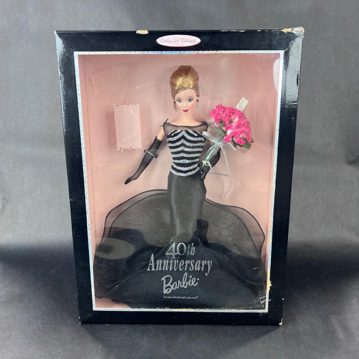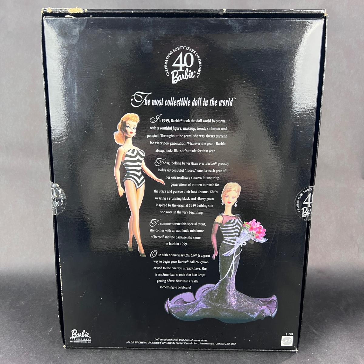 Barbie is in one of the prettiest Mermaid dresses to celebrate her 40th Anniversary. Produced by Mattel in 1999 to celebrate the 40th Anniversary of the doll, she sure is a beaut! This doll has not been out of the box. **|** Please see photos for details and condition. ::: Shipping is available on this lot. If you require shipping you must let us know at the close of the auction. We will coordinate with you after the item has been won. Shipping fees will include insurance up to or exceeding the value of all items being mailed. If you have any questions regarding this lot please contact the auctioneer either via this website, by direct email or by phone. PICK UP TIMES and other important information can be found in the TERMS and DESCRIPTION of the auction. Please take a look for pertinent information. Thanks!