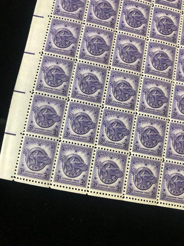 #41 Full Sheet of (100 )- .03 Cent Stamps Honoring those who served.