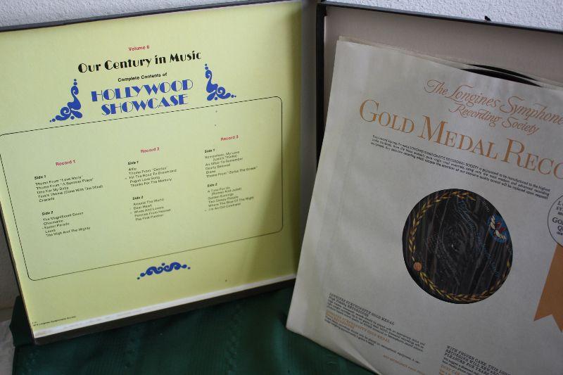 3 Vinyl Records in the set, records are in excellent condition; Longines Symphonette Society Presents Our Century in Music, a Library of Memorable Hits from 1900 to the present ; HOLLYWOOD SHOWCASE