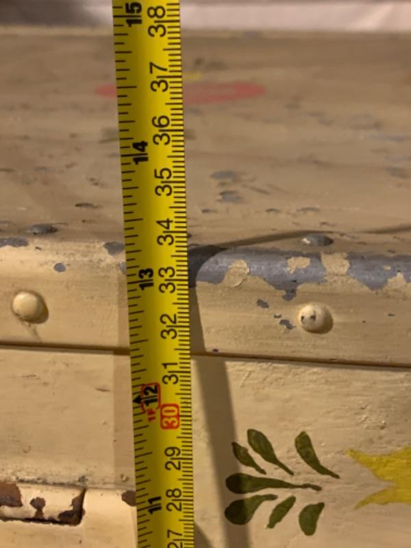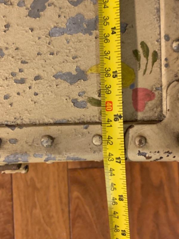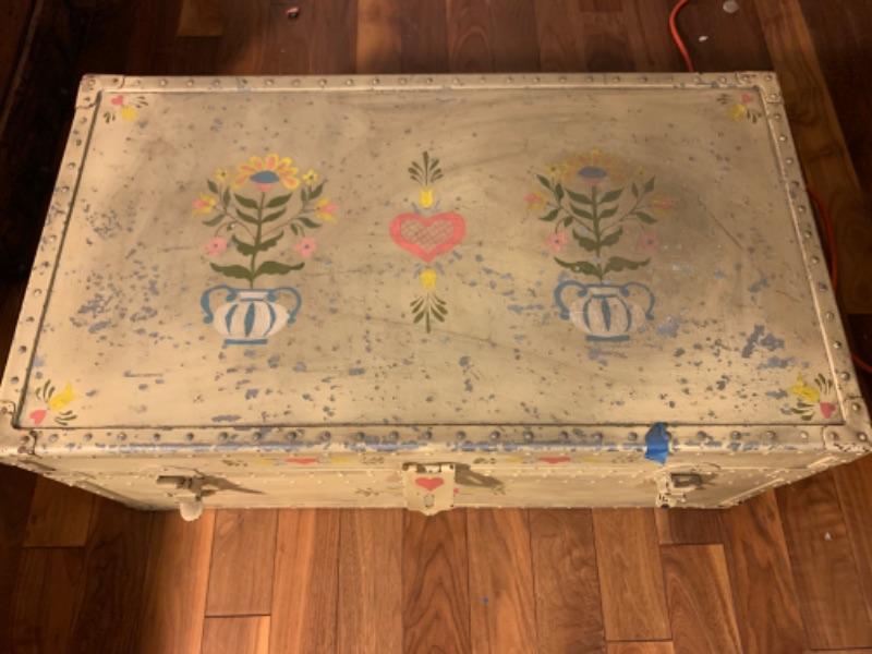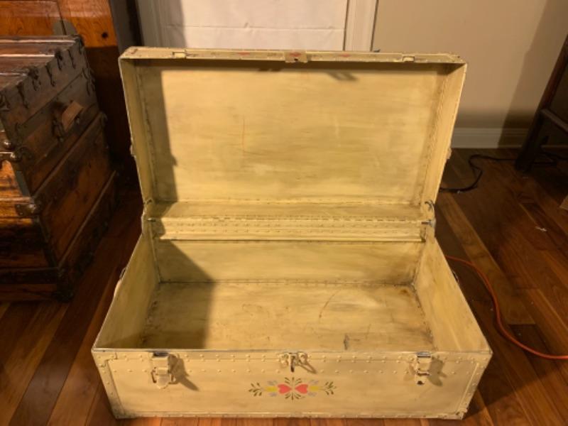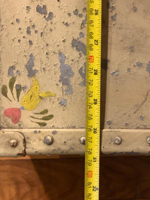 Painted Metal Steamer Trunk. Check photos for measurements.