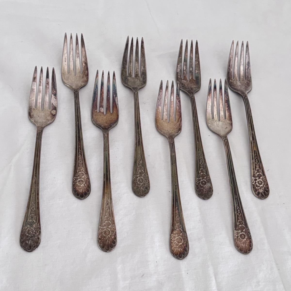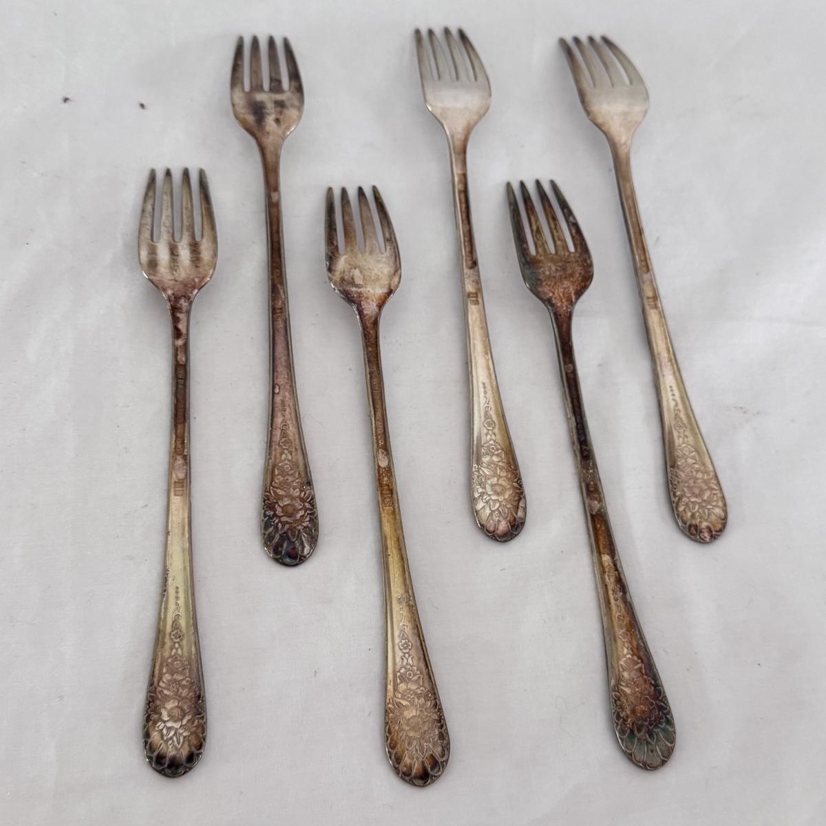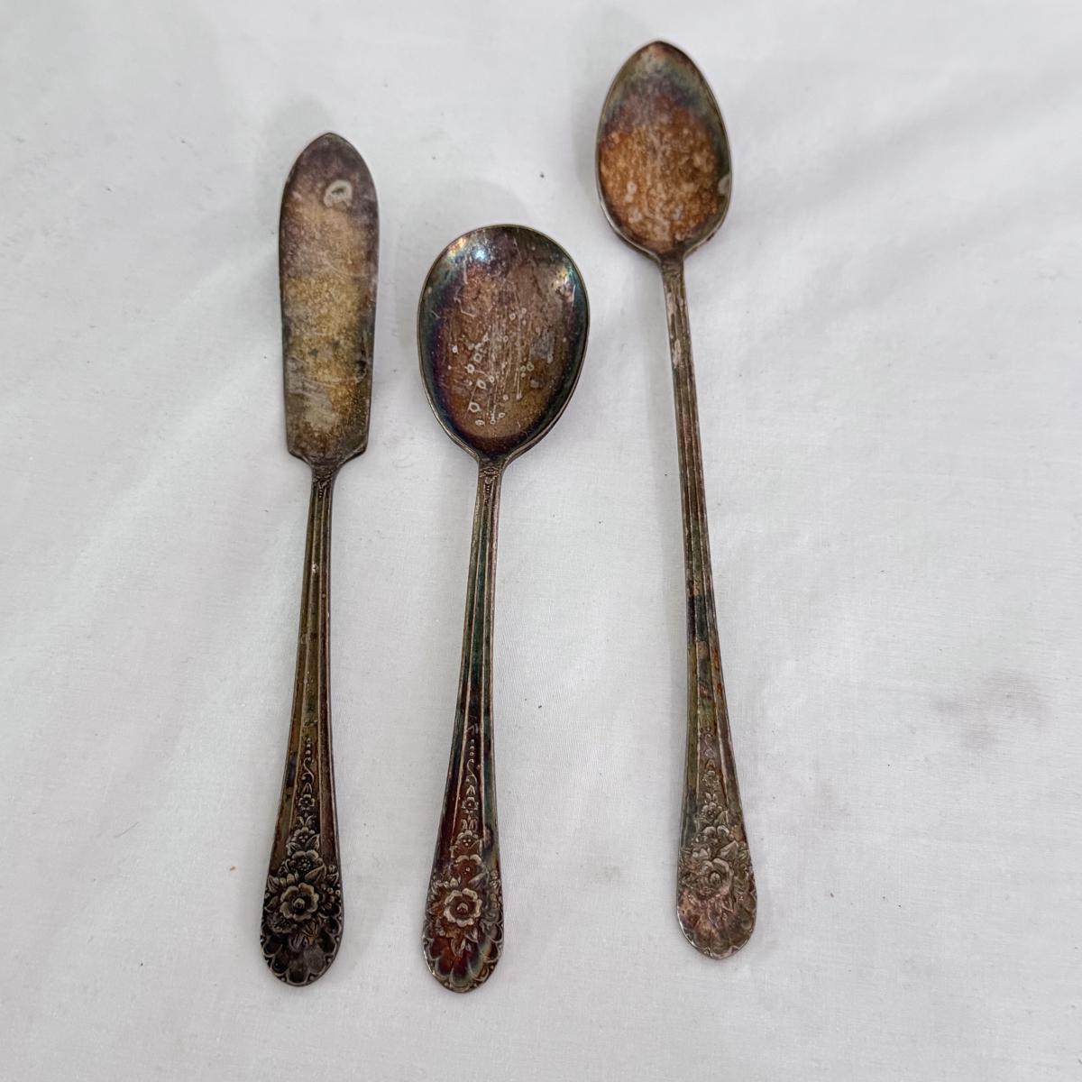 Lot includes 41 pieces of flatware from the WM Rogers ‘Jubilee’ collection - all appear to be silver-plated. You’ll find six butter knives, twenty spoons in three different sizes, 14 forks in two different sizes, and one small cheese knife. All pieces are tarnished due to age. See pictures for all details. Shipping available.