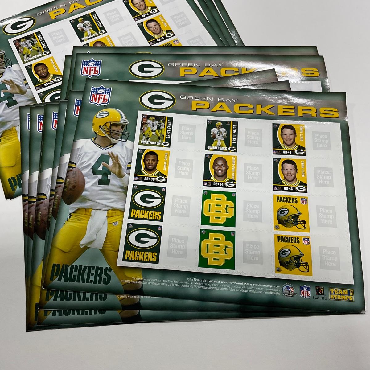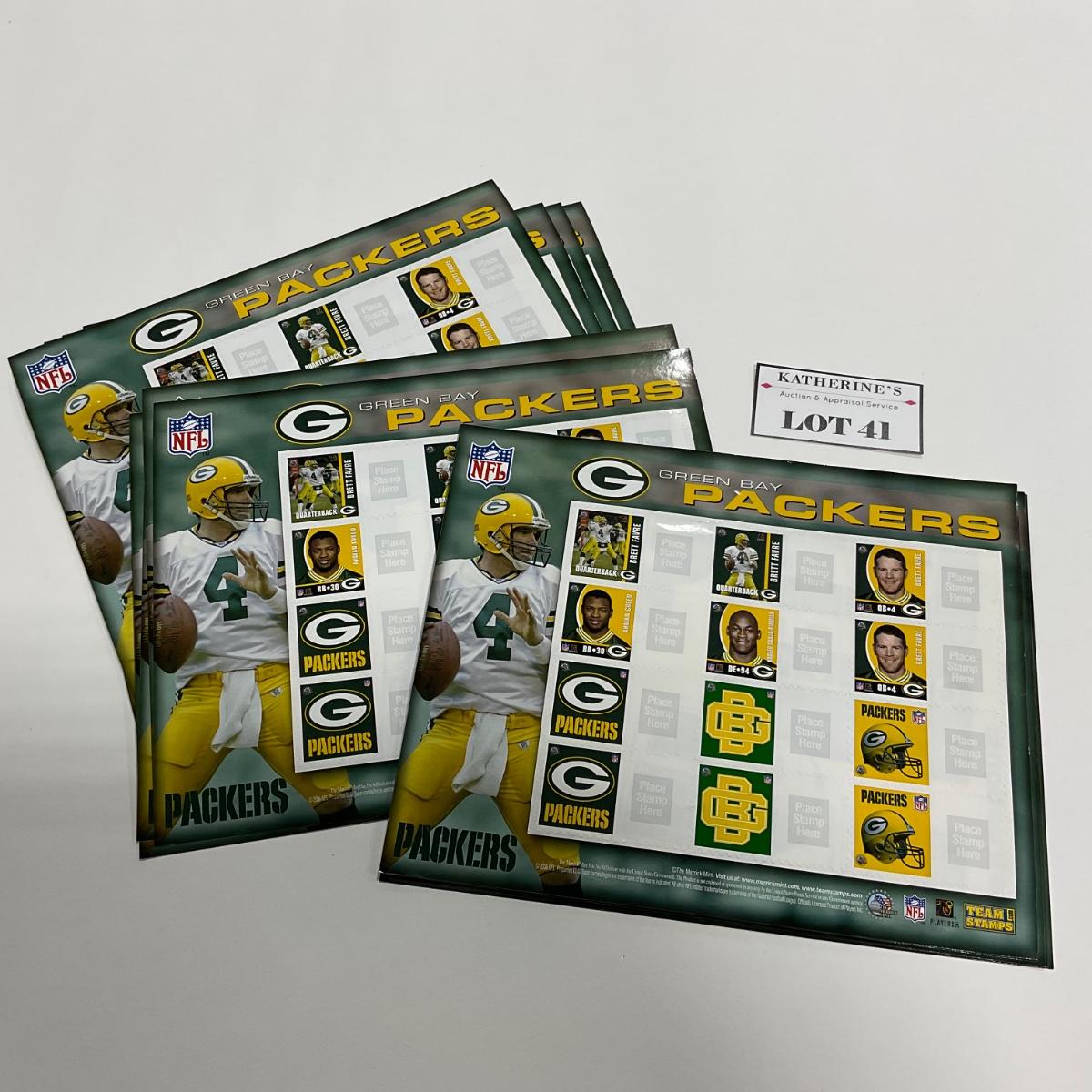 15 2006 NFL Green Bay Packers team stamp pages. Please see photos for details and condition. ::: Shipping is available on this lot. If you require shipping you must let us know at the close of the auction. We will coordinate with you after the item has been won. Shipping fees will include insurance up to or exceeding the value of all items being mailed. If you have any questions regarding this lot please contact the auctioneer either via this website, by direct email or by phone. PICK UP TIMES and other important information can be found in the TERMS and DESCRIPTION of the auction. Please take a look for pertinent information. Thanks!