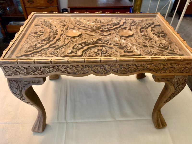 #41 VINTAGE INTRICATELY CARVED ASIAN TEA TABLE