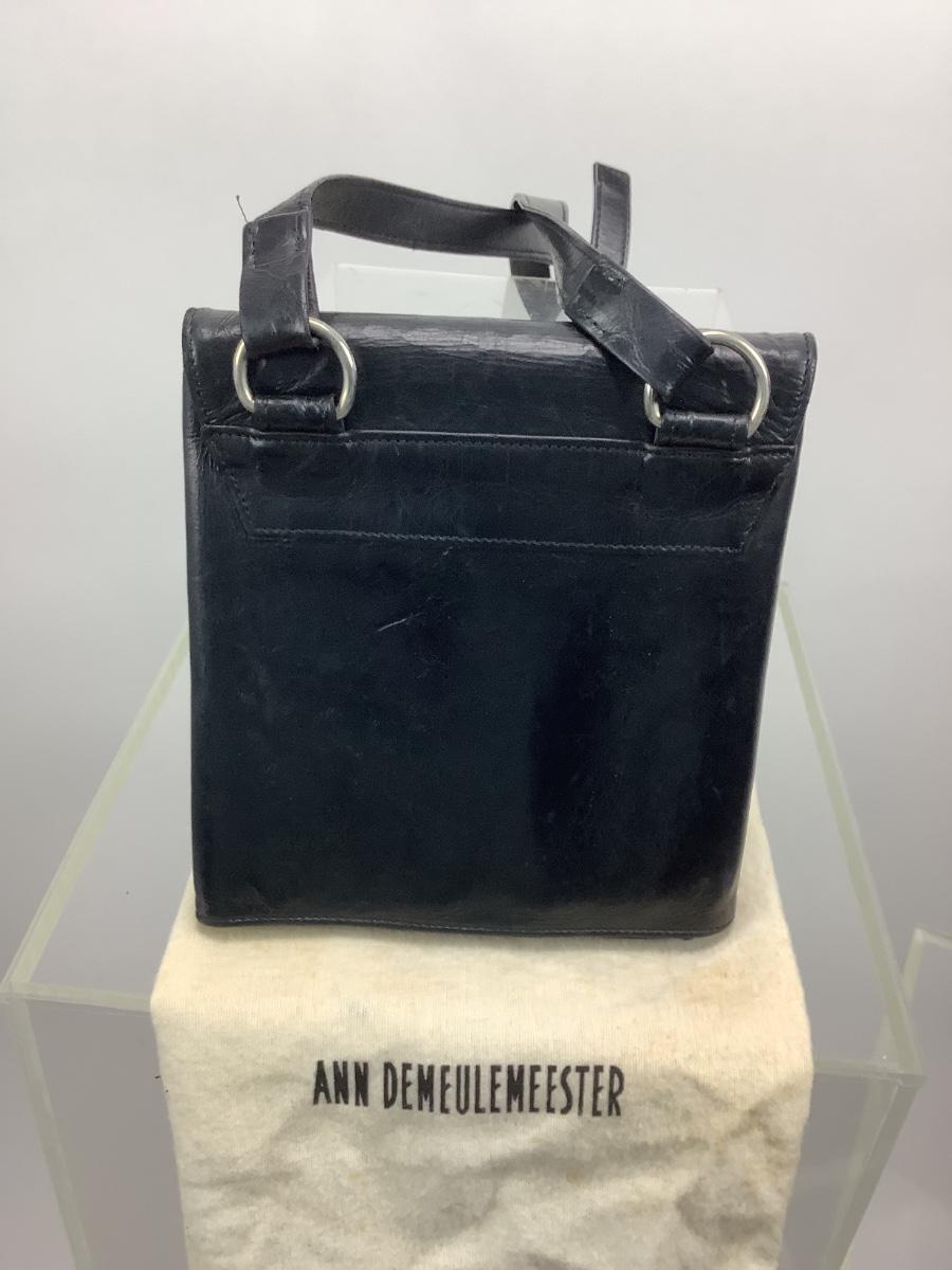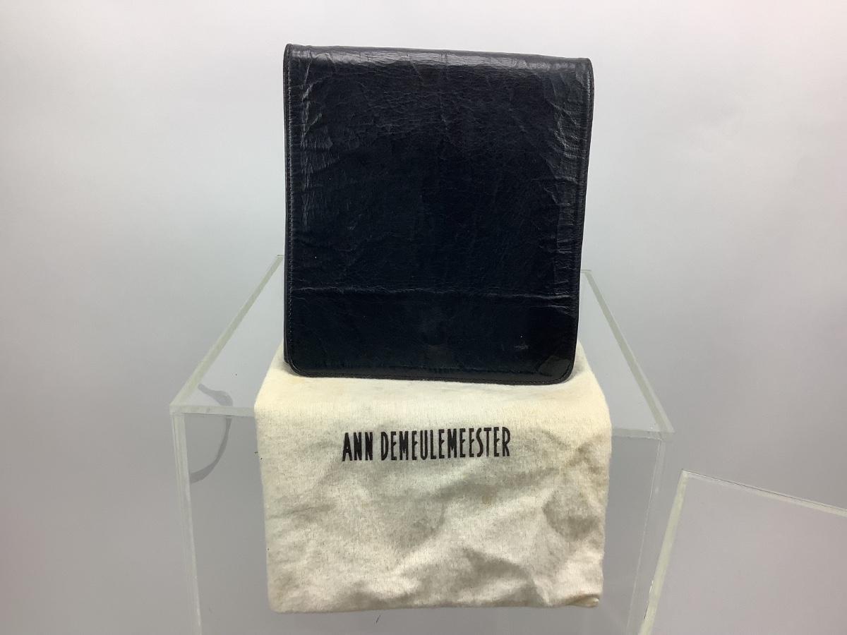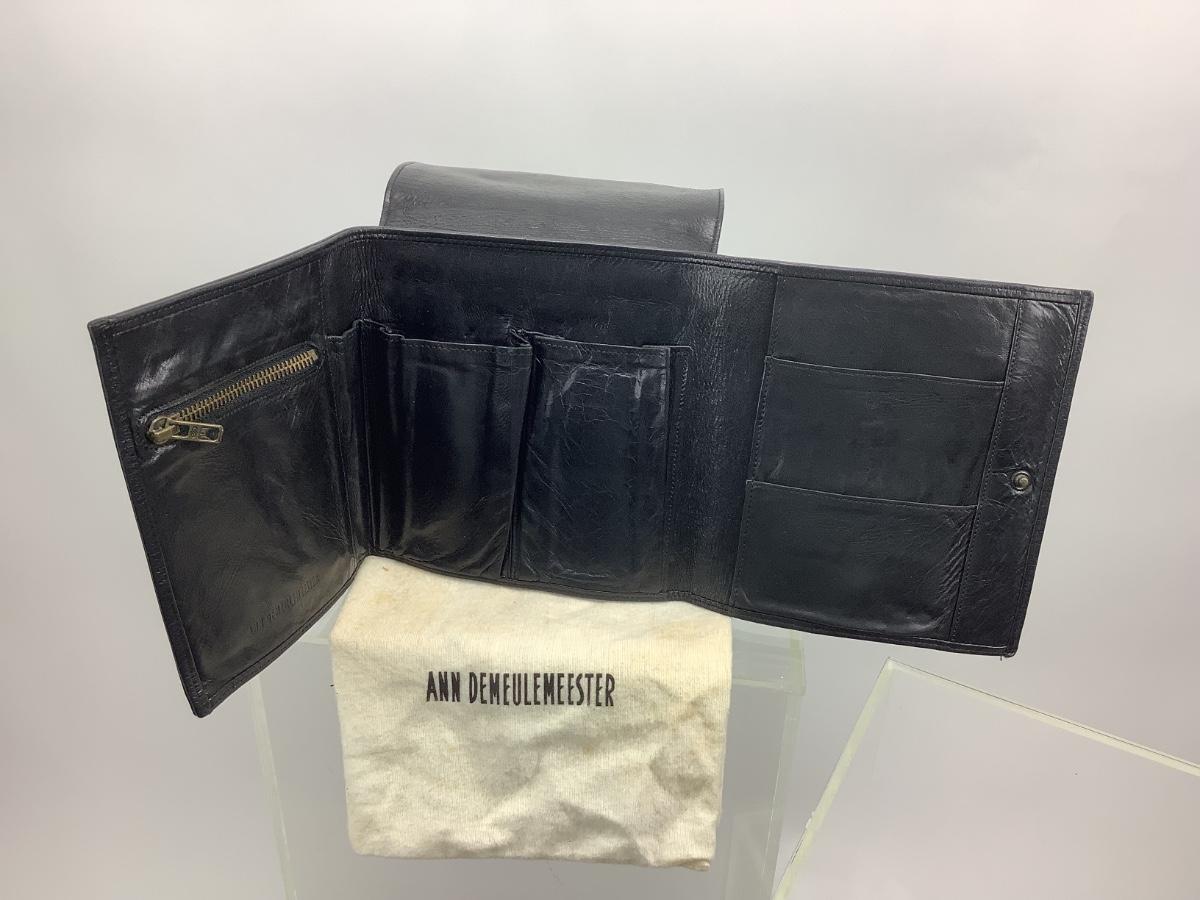 The purse is a tri-fold purse, black leather, crossbody with dust bag, measures 7.5" x 7".