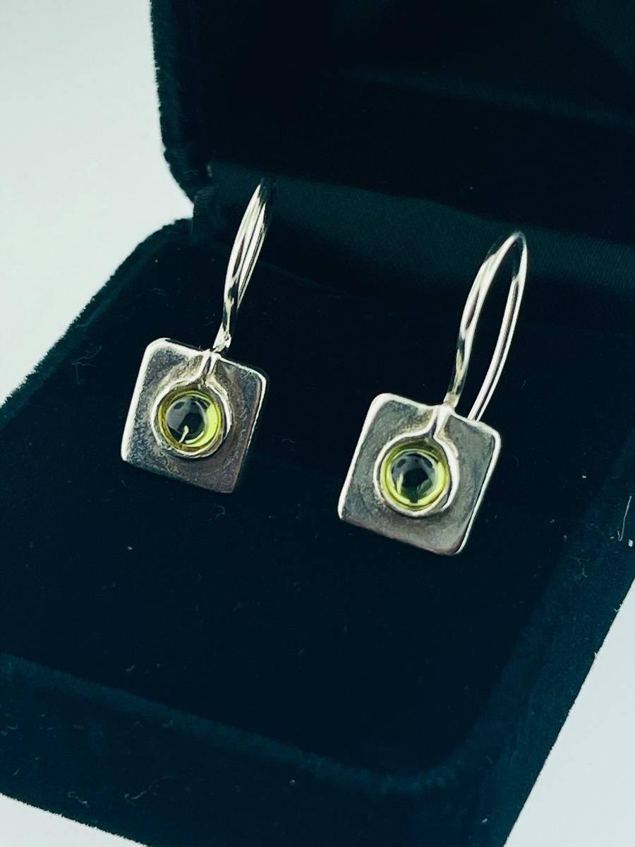 Earrings measure a 1” dangle. 10 x 10mm square = 4 grams
